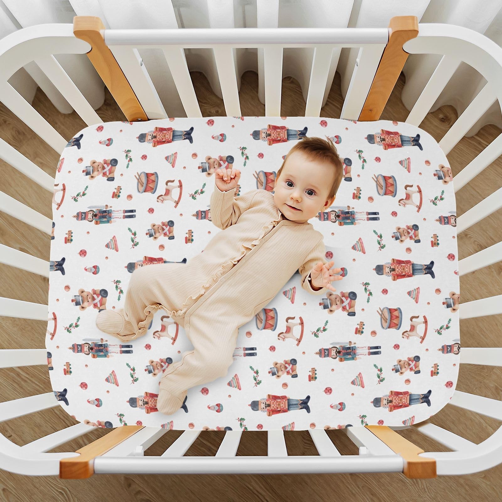 Christmas Soldier Crib Sheets for Boys Girls - Portable Microfiber Fitted Cri...