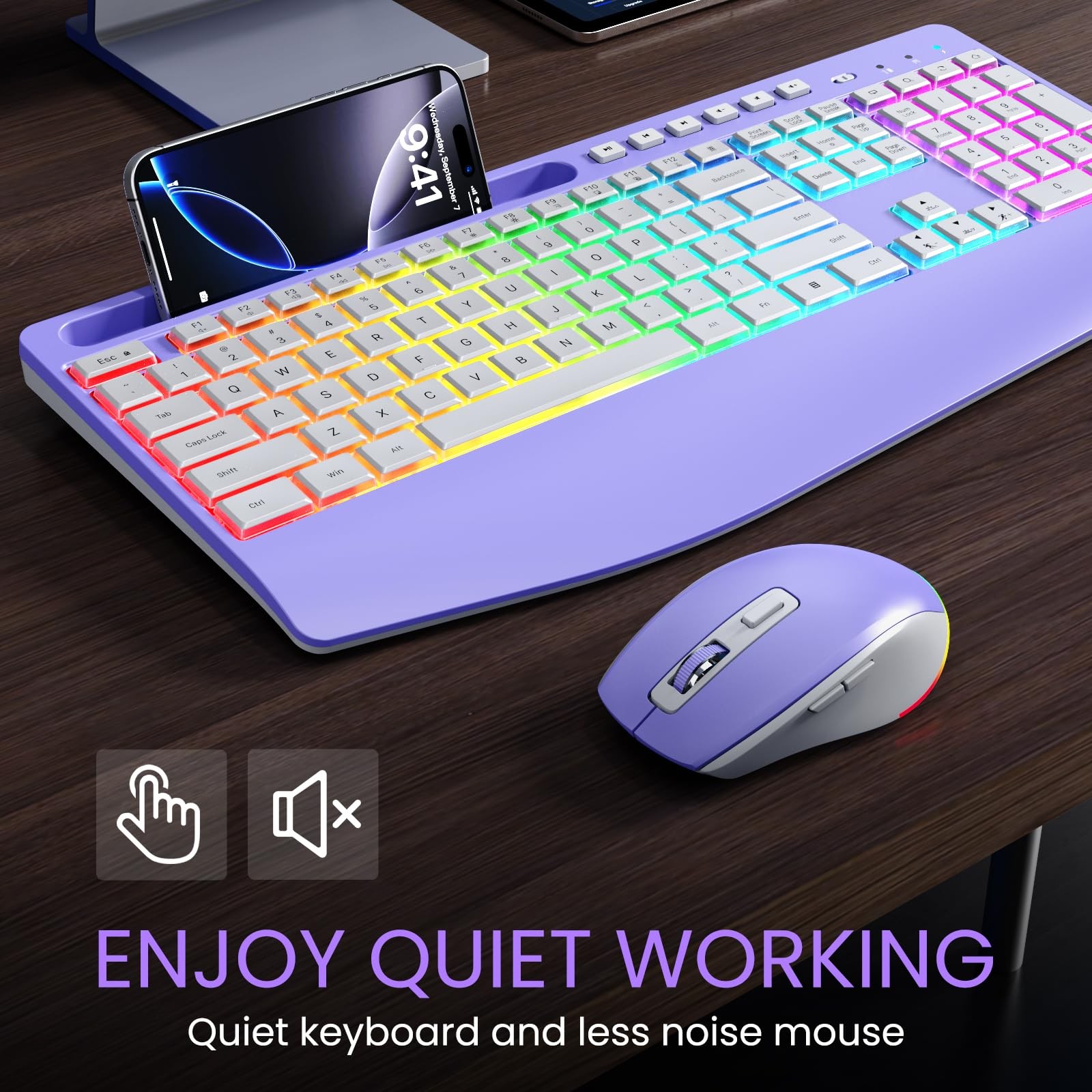 Wireless Keyboard and Mouse Combo- 2.4G Rechargeable Keyboard with Phone Hold...