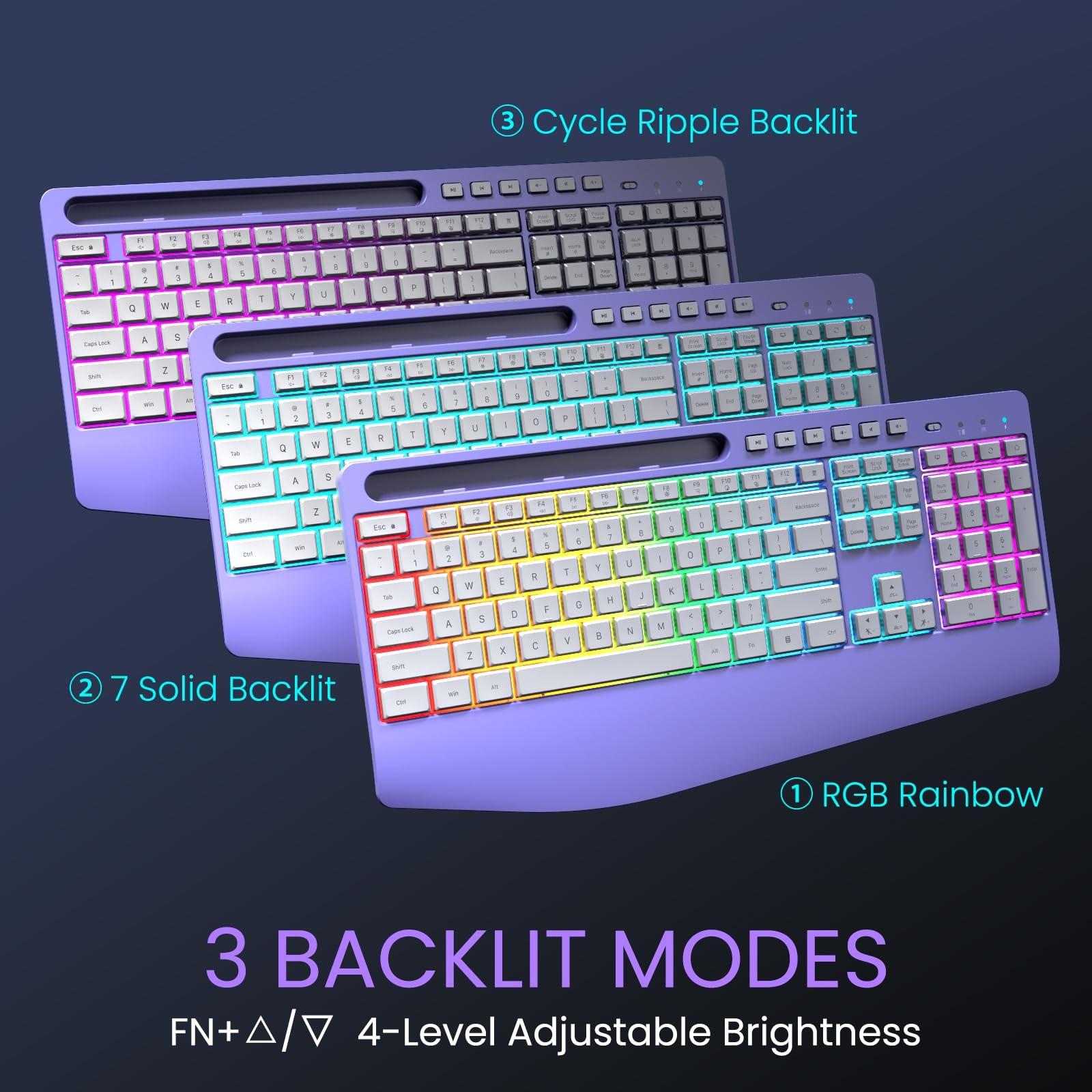 Keyboard Description: Ergonomic Wireless Keyboard With Rgb Backlit
