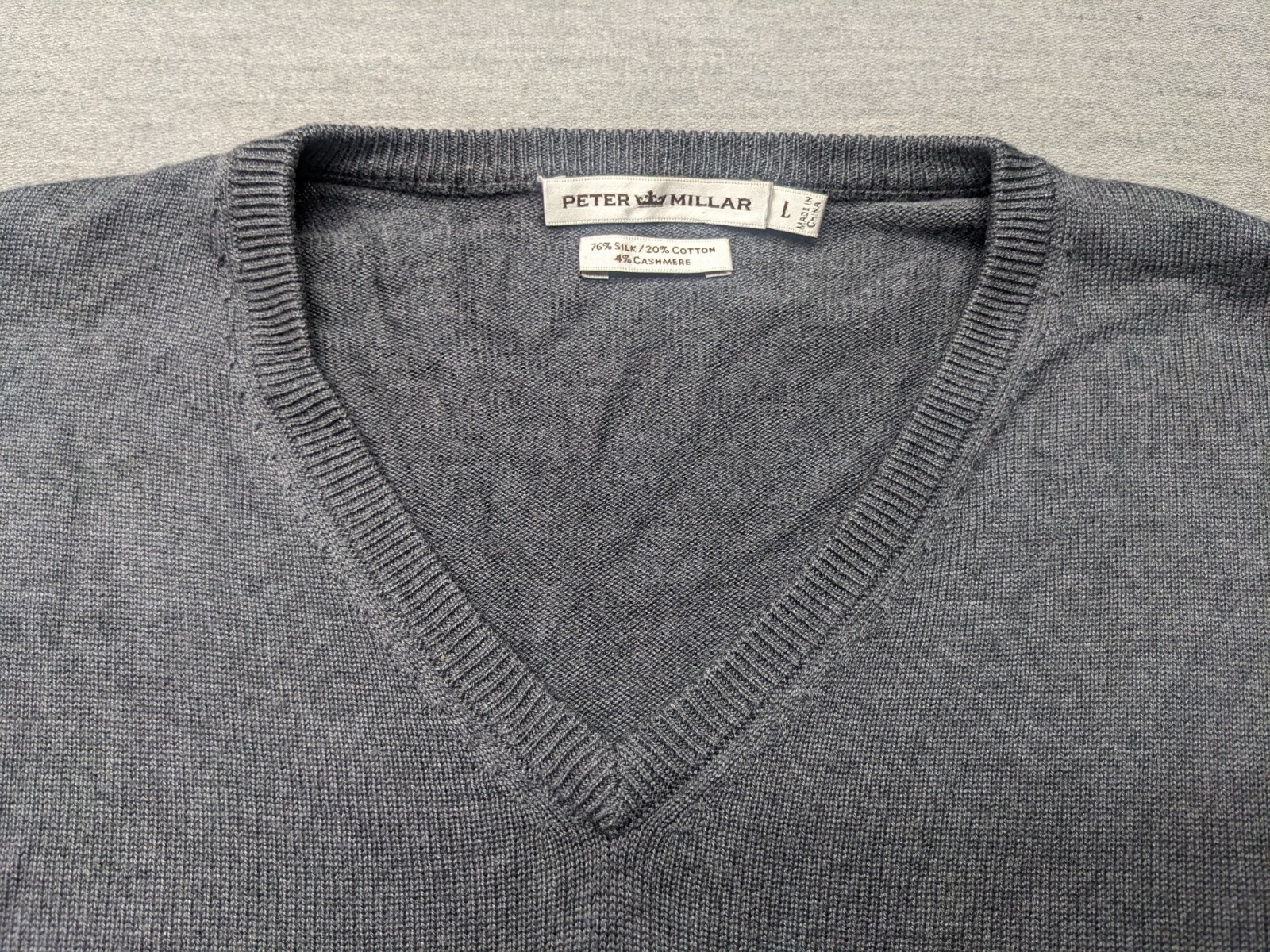 как выглядит Peter Millar V Neck Sweater Mens Large Silk Cashmere Blend Gray фото