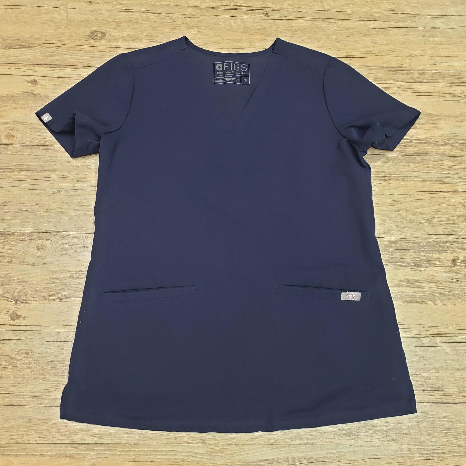 как выглядит FIGS Scrub Top Womens XS Navy Blue Technical Collection V Neck Medical фото