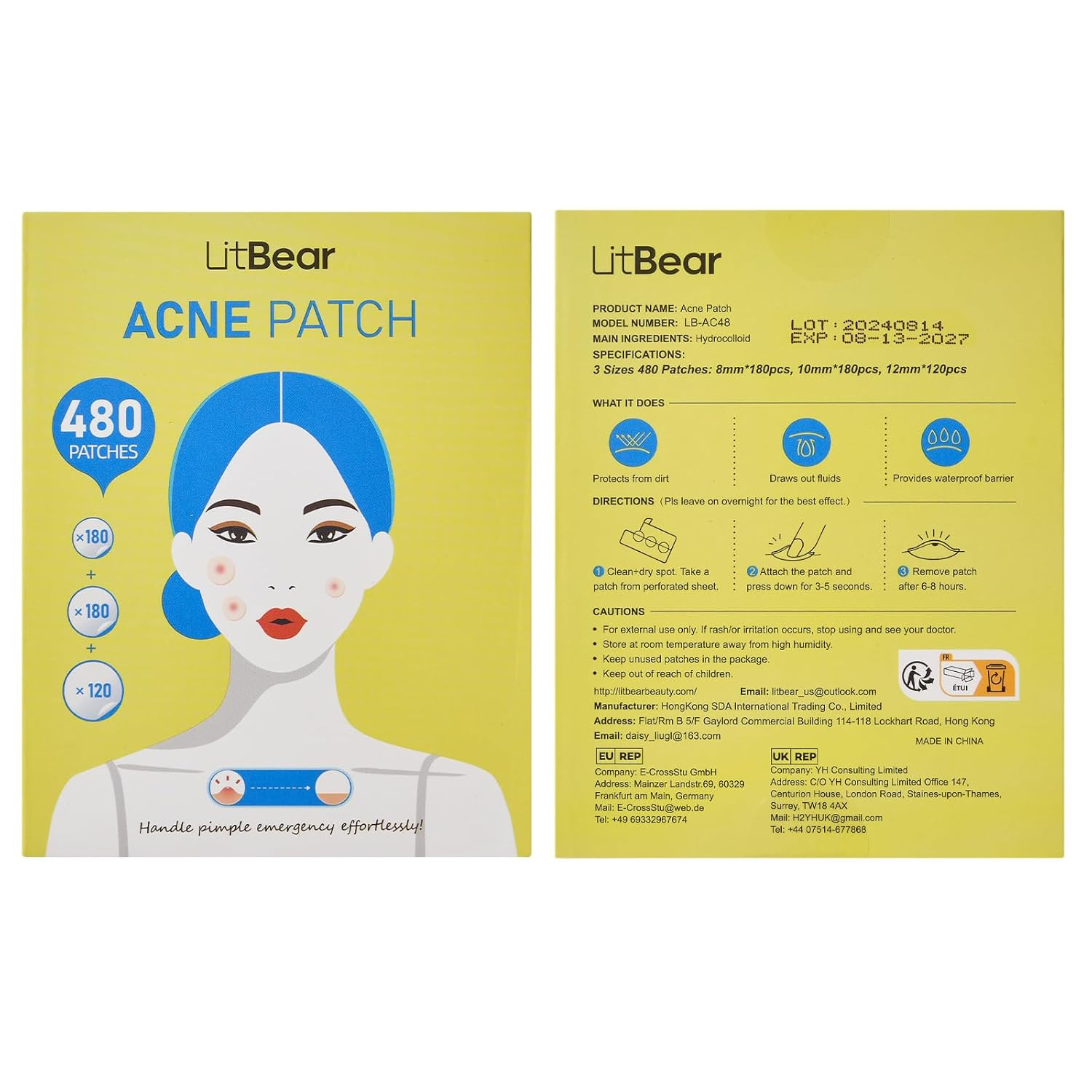 Bulk Pimple Patches, 480 Hydrocolloid Stickers for Face, 3 Sizes for Acne