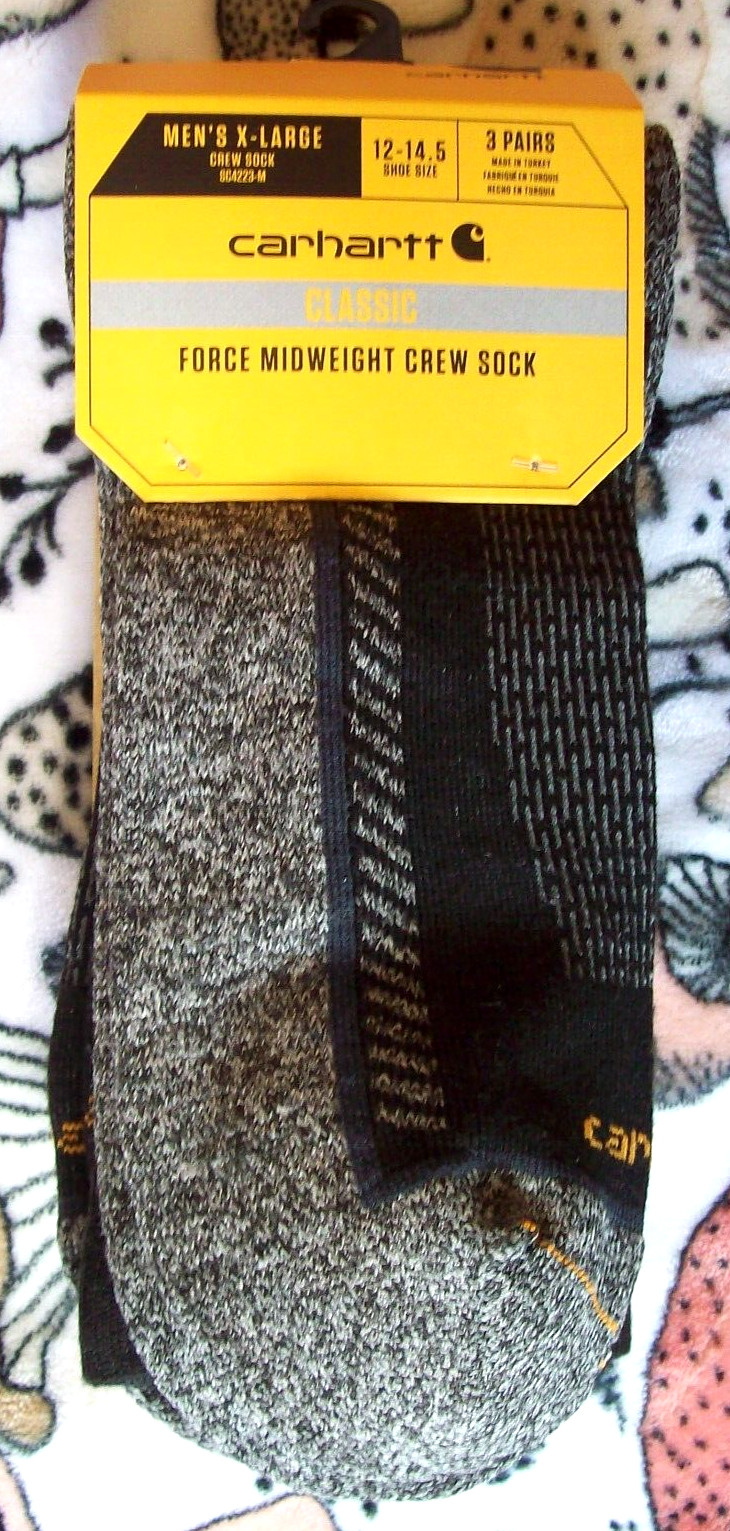 CARHARTT 3 Pairs CLASSIC FORCE MIDWEIGHT CREW SOCKS Black Large 9-11.5/10-12.5