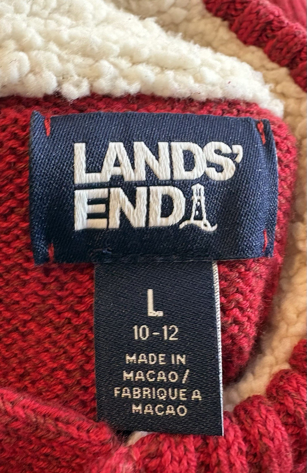Boys Red Cable Knit Sweater Matching Beige Pants Sz L 10 - 12 Lands End Preown