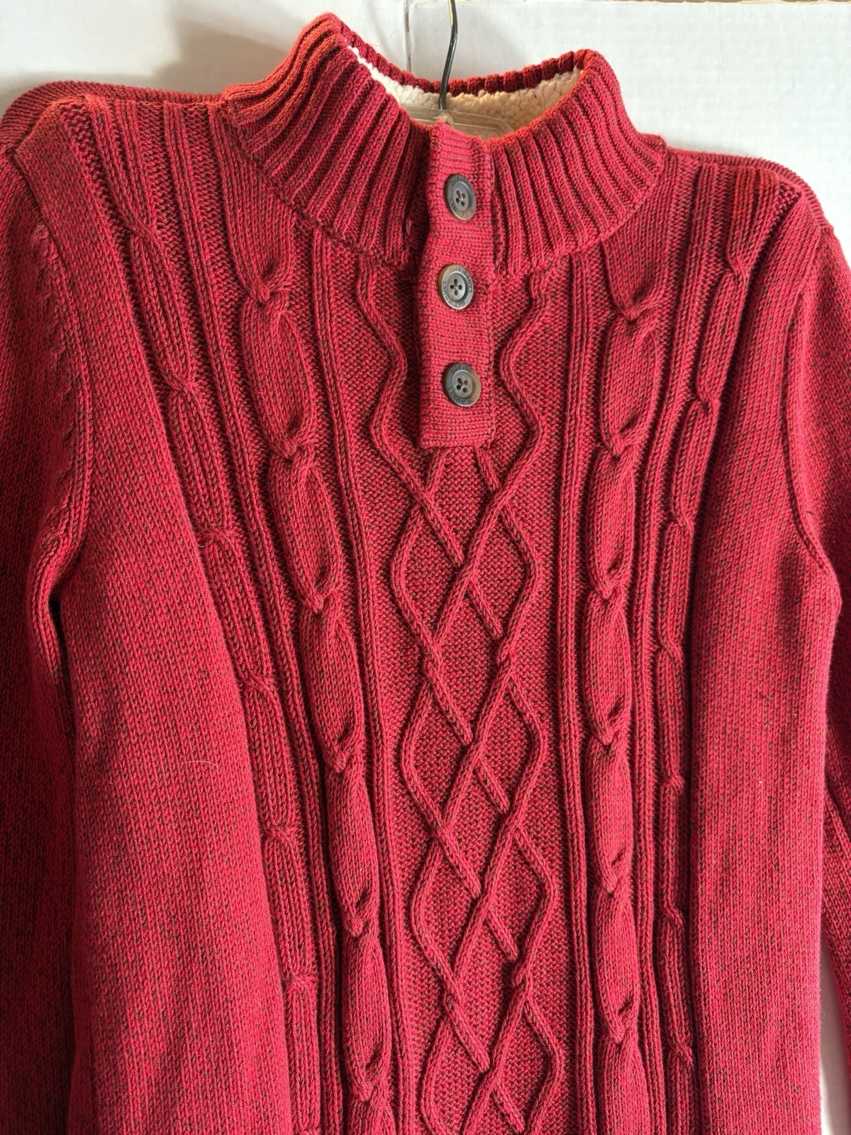 как выглядит Boys Red Cable Knit Sweater Matching Beige Pants Sz L 10 - 12 Lands End Preown фото