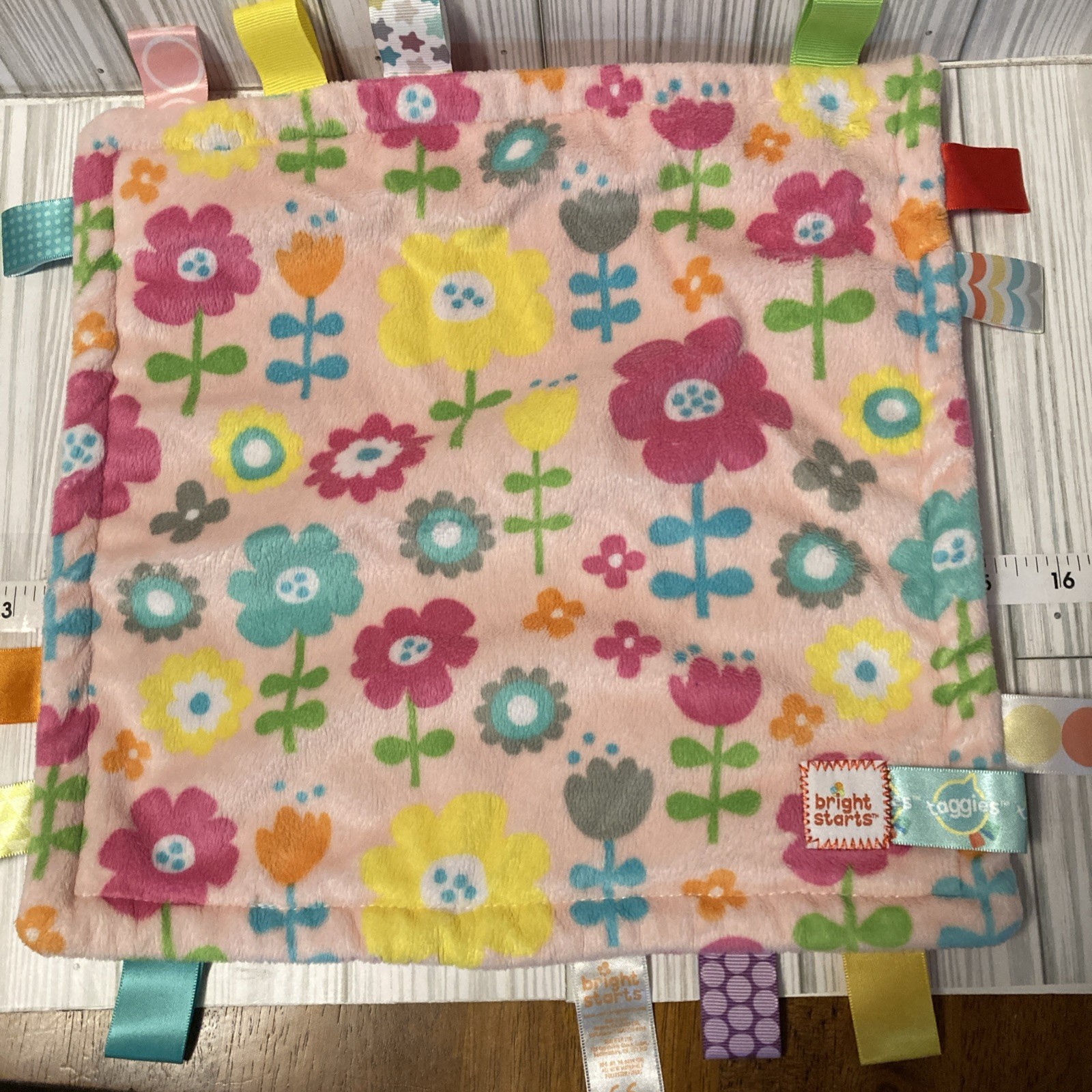 Bright Starts Taggies 2 Plush Baby Lovey Security Blankets Squares Flowers A
