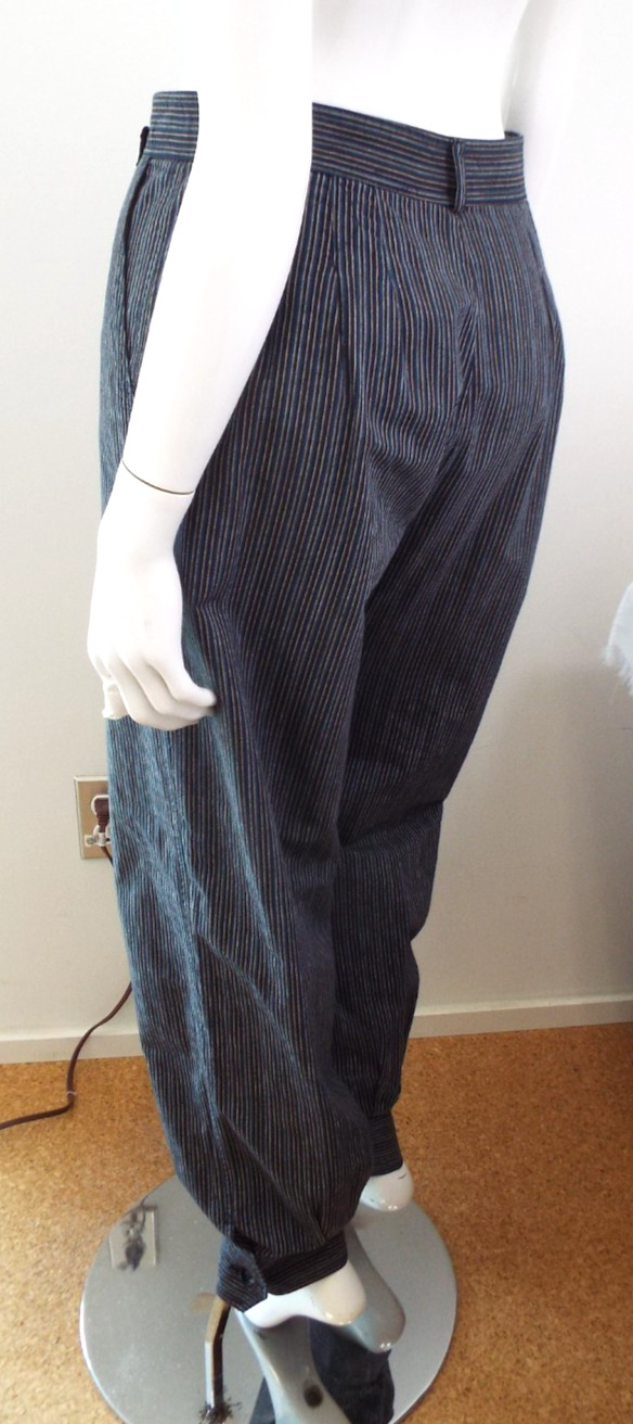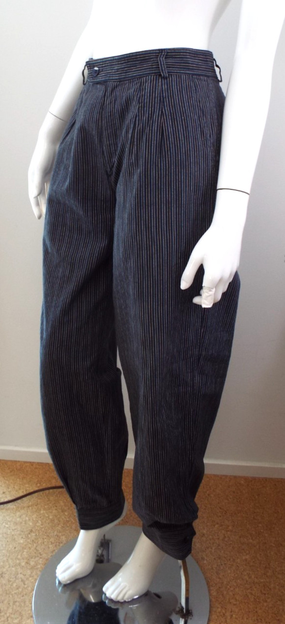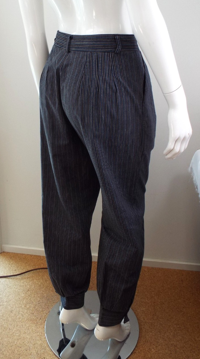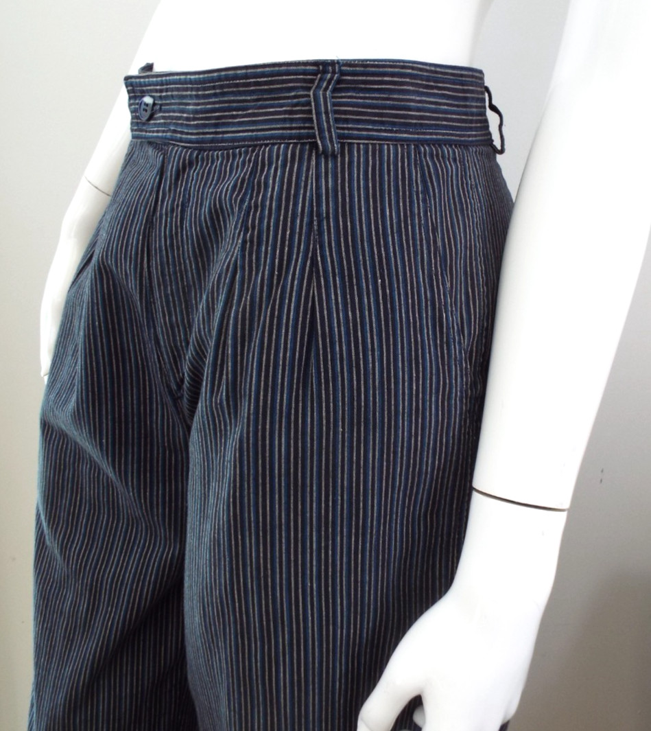 Vintage 1970s Kenzo Jap Cotton Harem Pants Striped Blue Black Pleats 40 Pockets