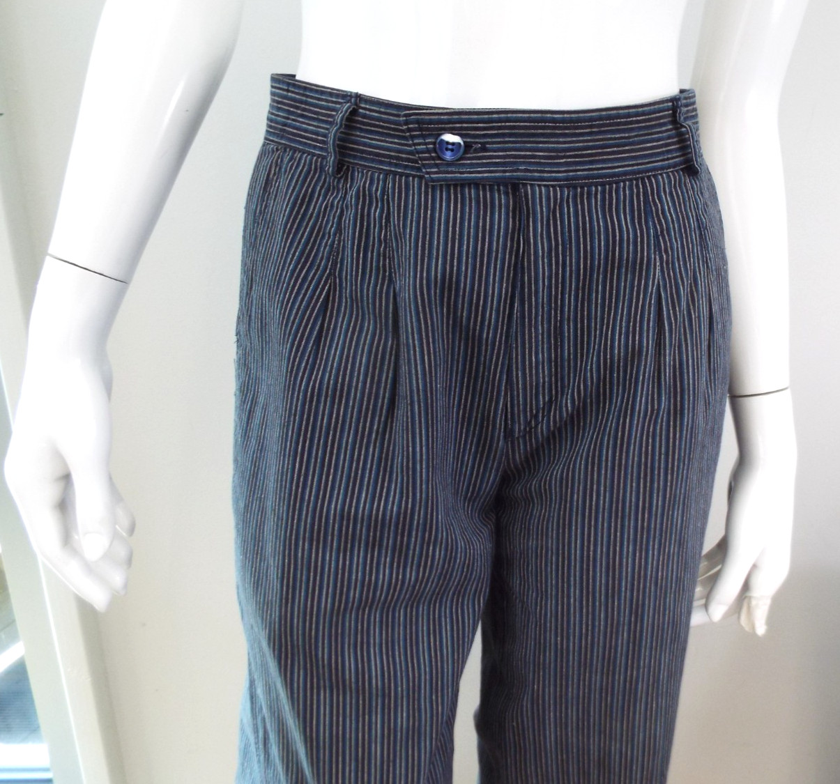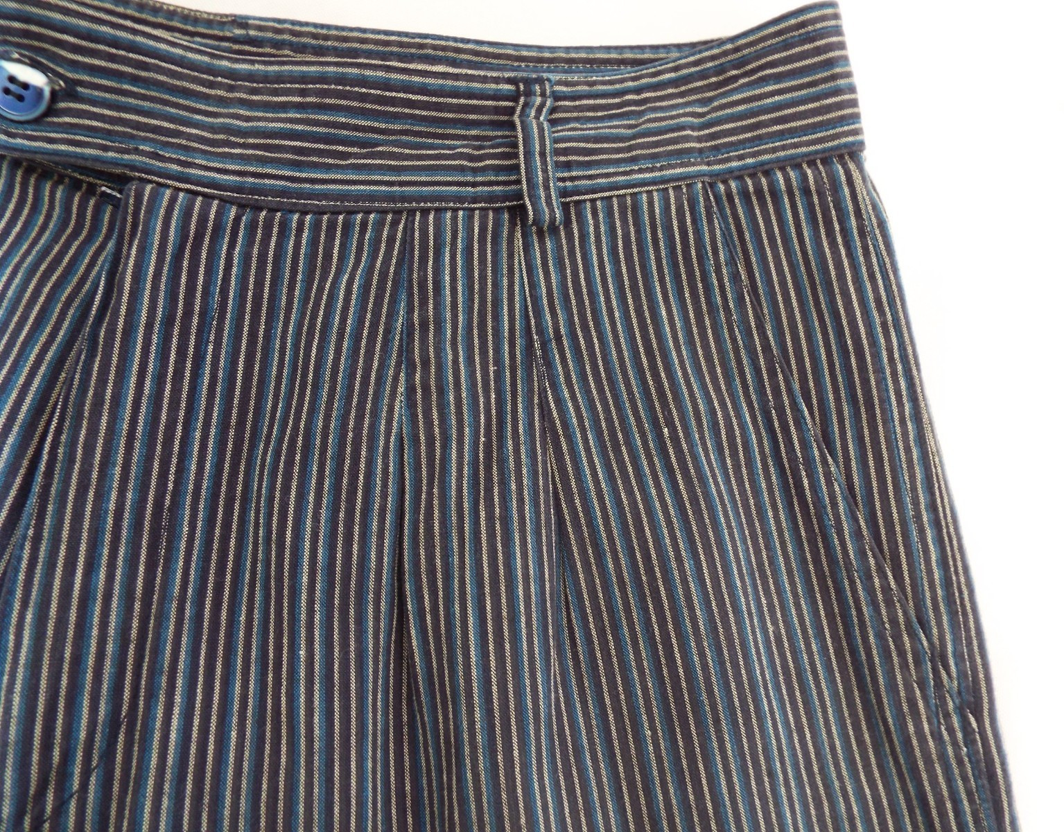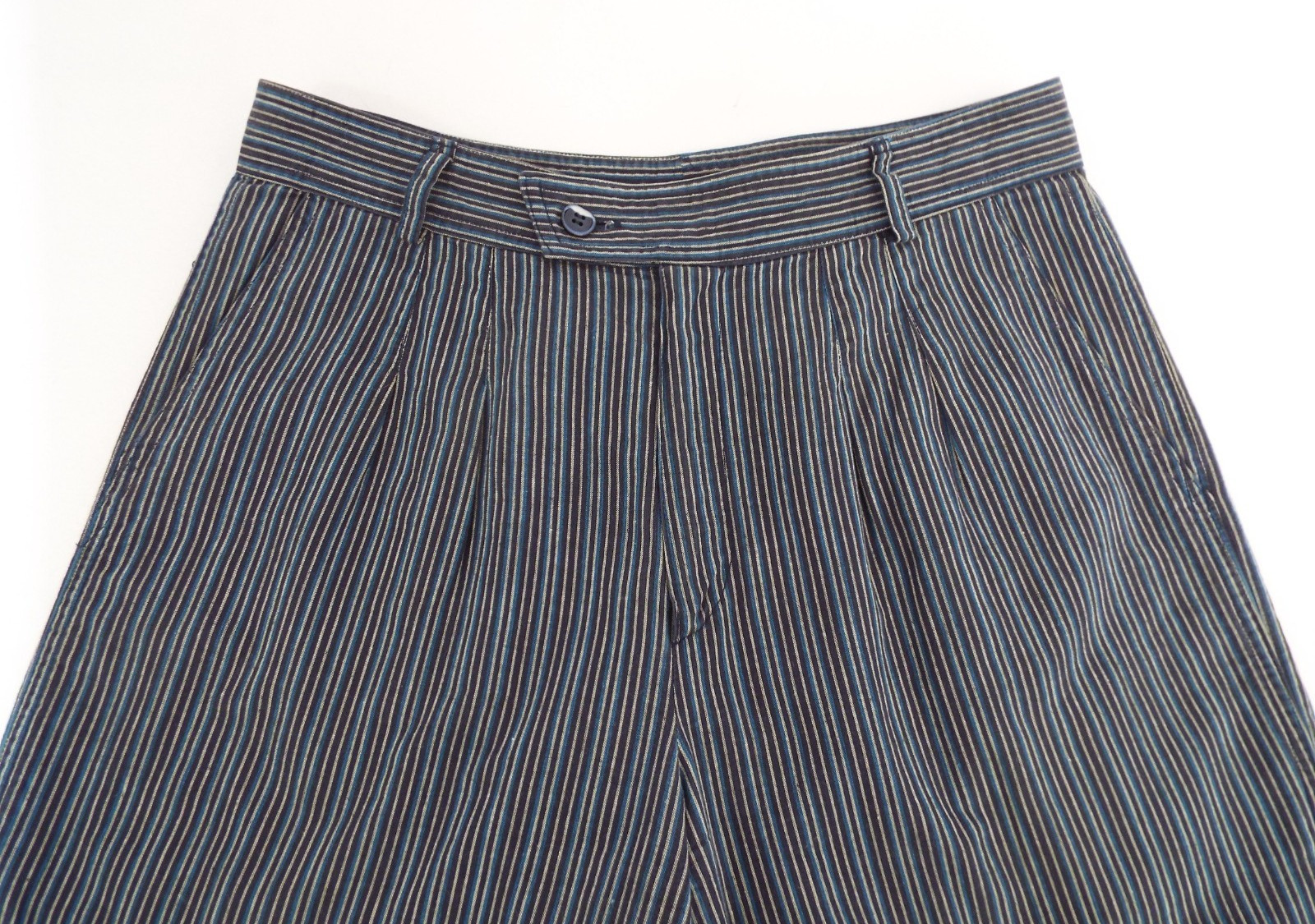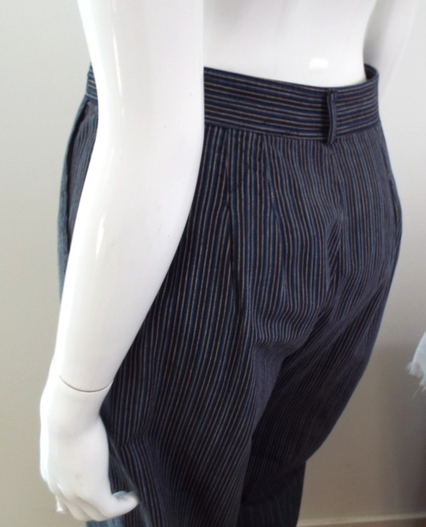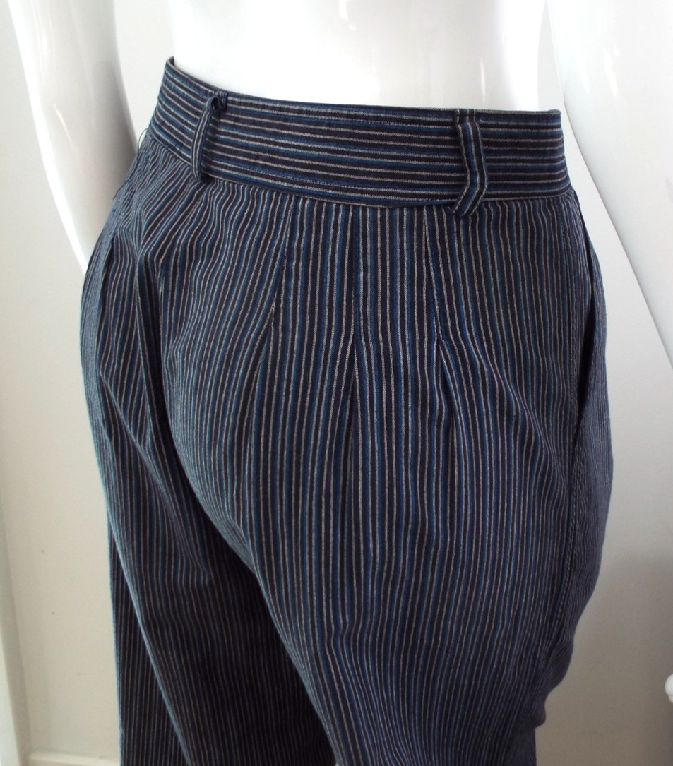 как выглядит Vintage 1970s Kenzo Jap Cotton Harem Pants Striped Blue Black Pleats 40 Pockets фото