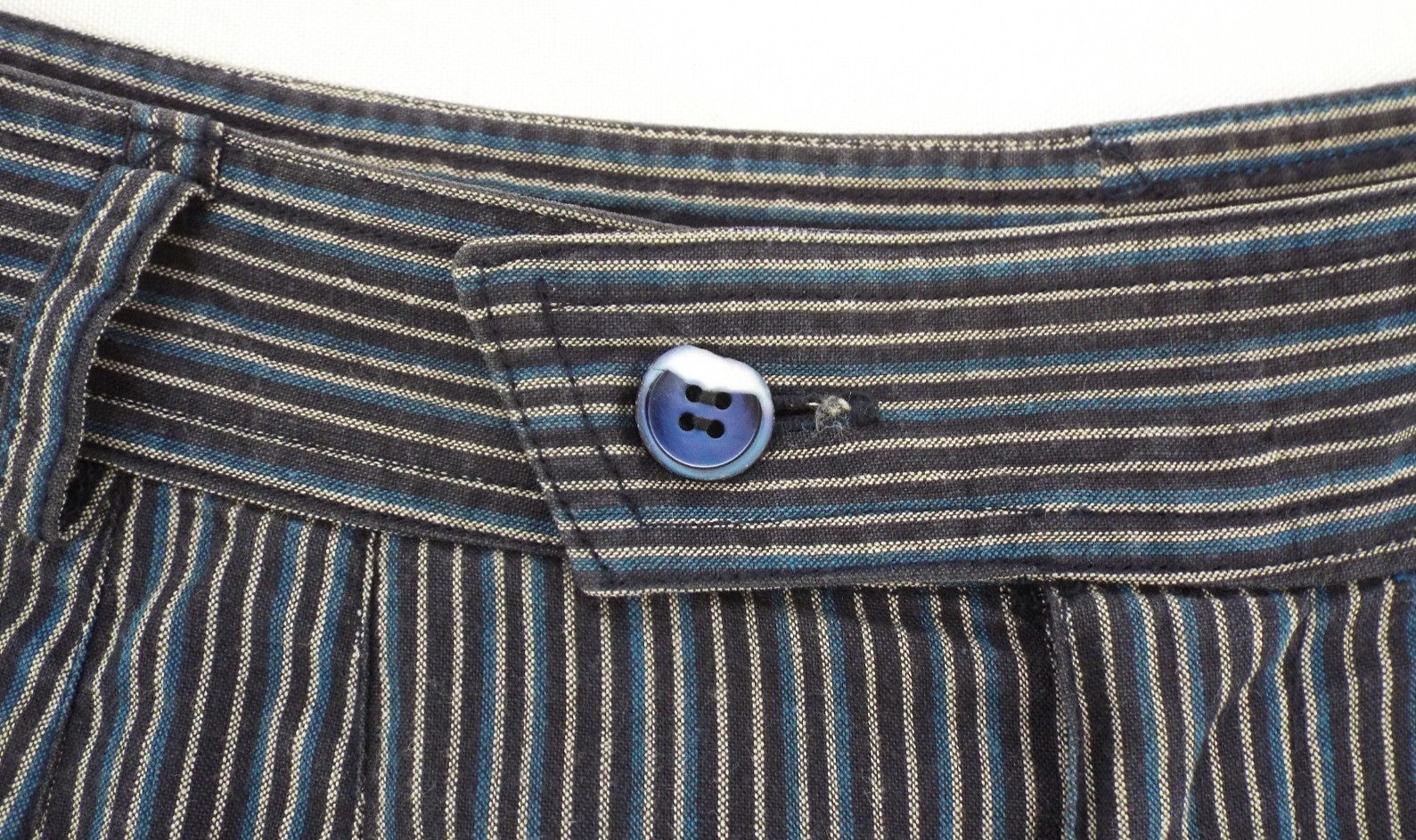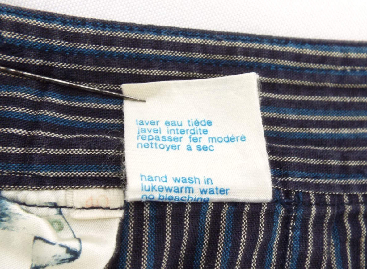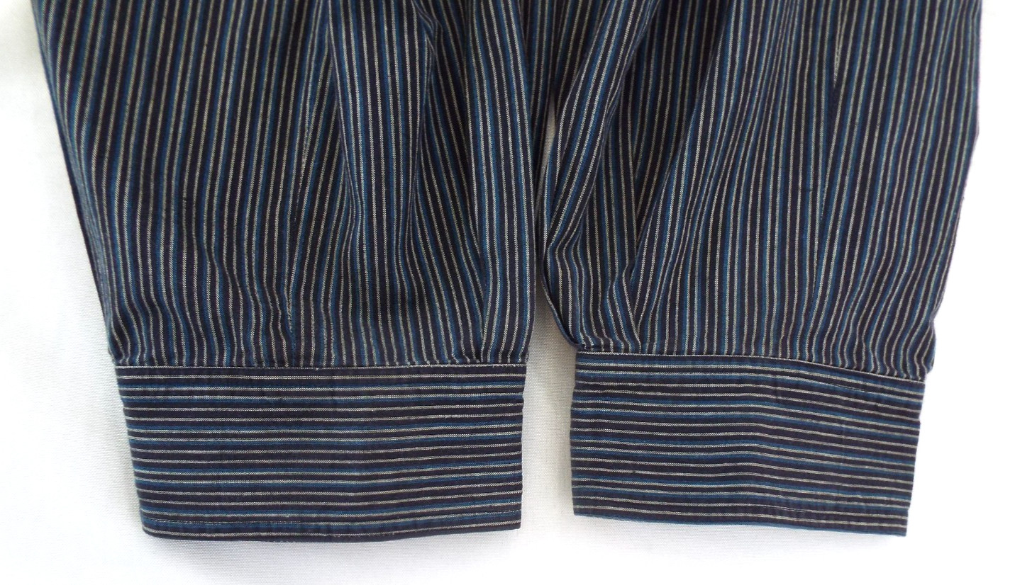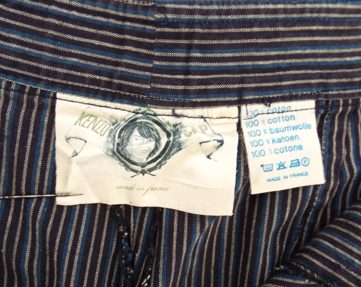 как выглядит Vintage 1970s Kenzo Jap Cotton Harem Pants Striped Blue Black Pleats 40 Pockets фото