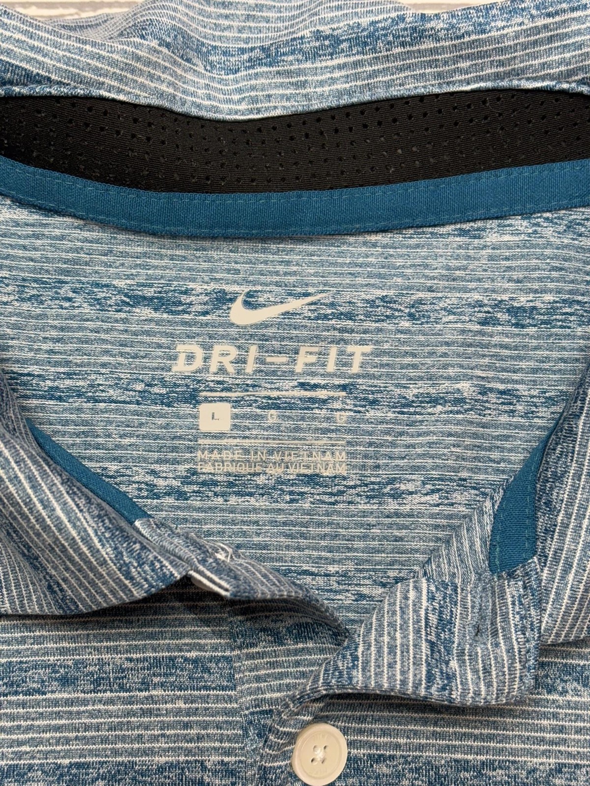 как выглядит Nike Polo Shirt Mens Large Blue Stripe Dri-Fit Golf Performance Short Sleeve фото