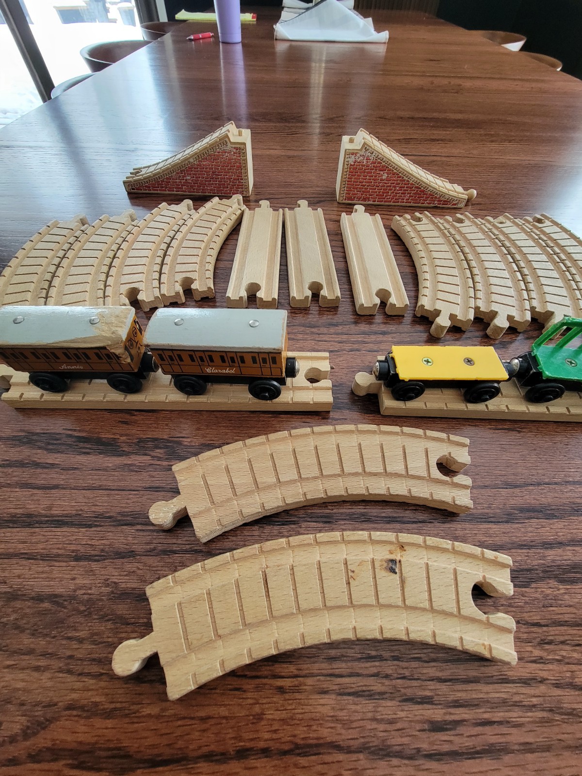 Large Lot 21 Pcs Wooden Train And Track Pieces Brio Thomas Compatible