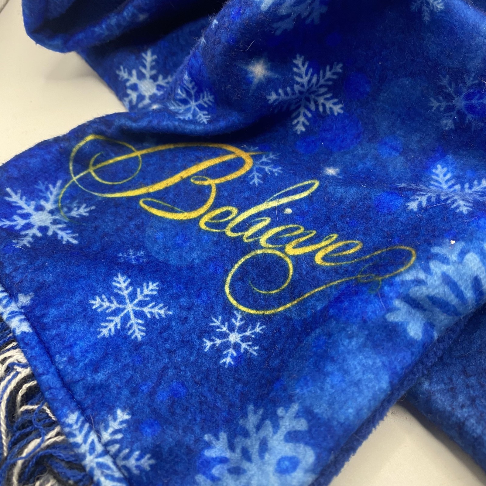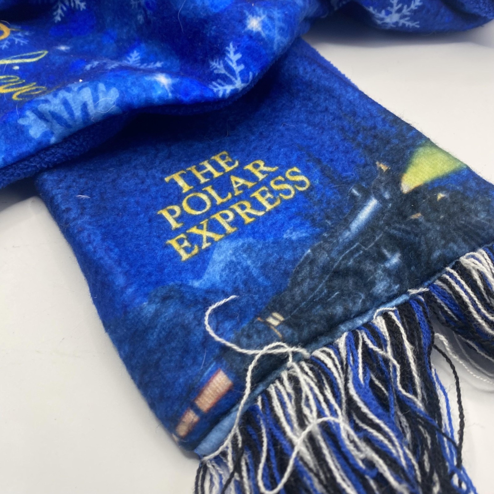The Polar Express Scarf Womens One Size Blue Fleece Believe Snowflake Fringe