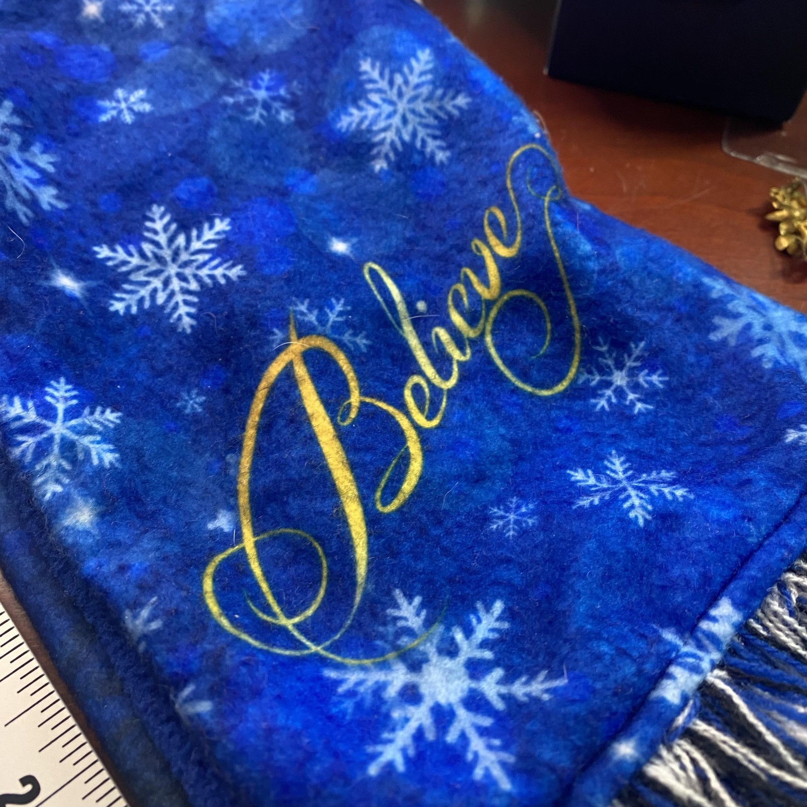 как выглядит The Polar Express Scarf Womens One Size Blue Fleece Believe Snowflake Fringe фото