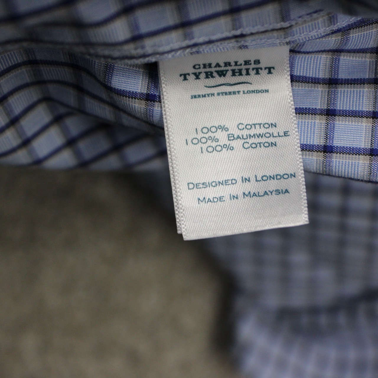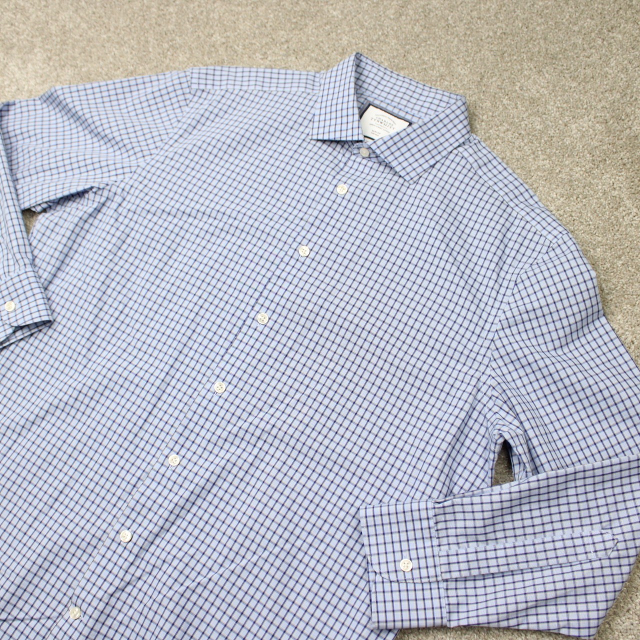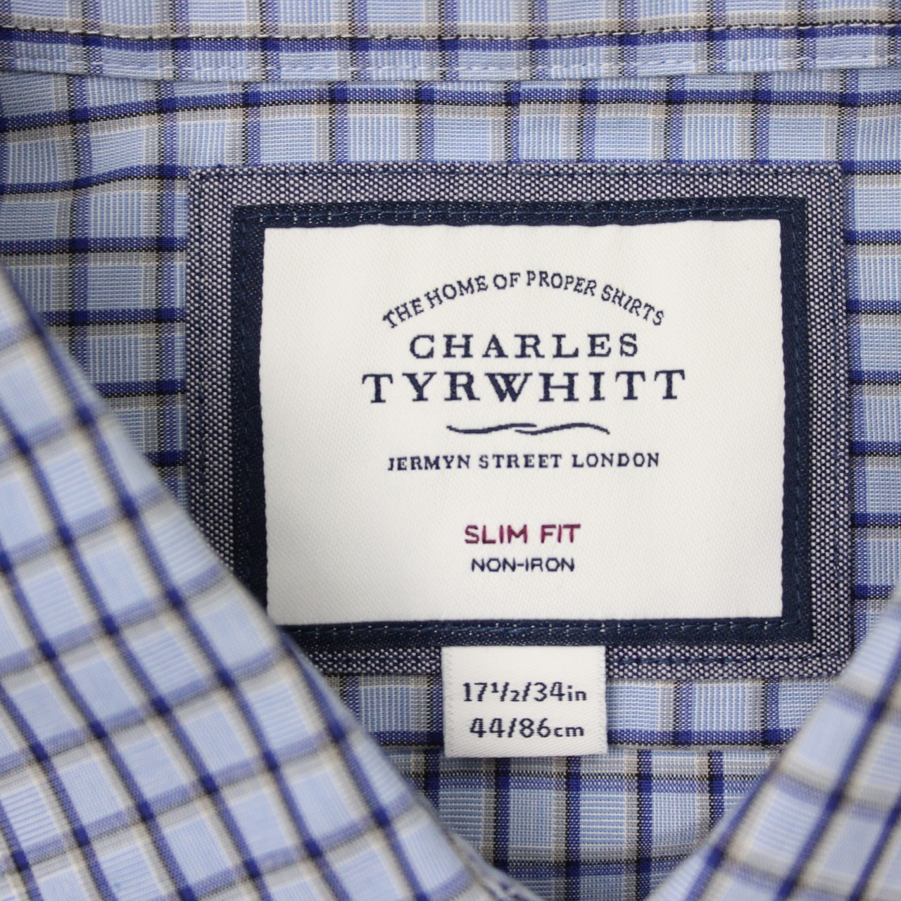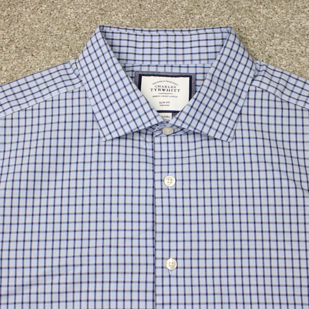 как выглядит Charles Tyrwhitt Shirt Mens 17 1/2, 34 Blue Non Iron Slim Fit Cotton Long Sleeve фото