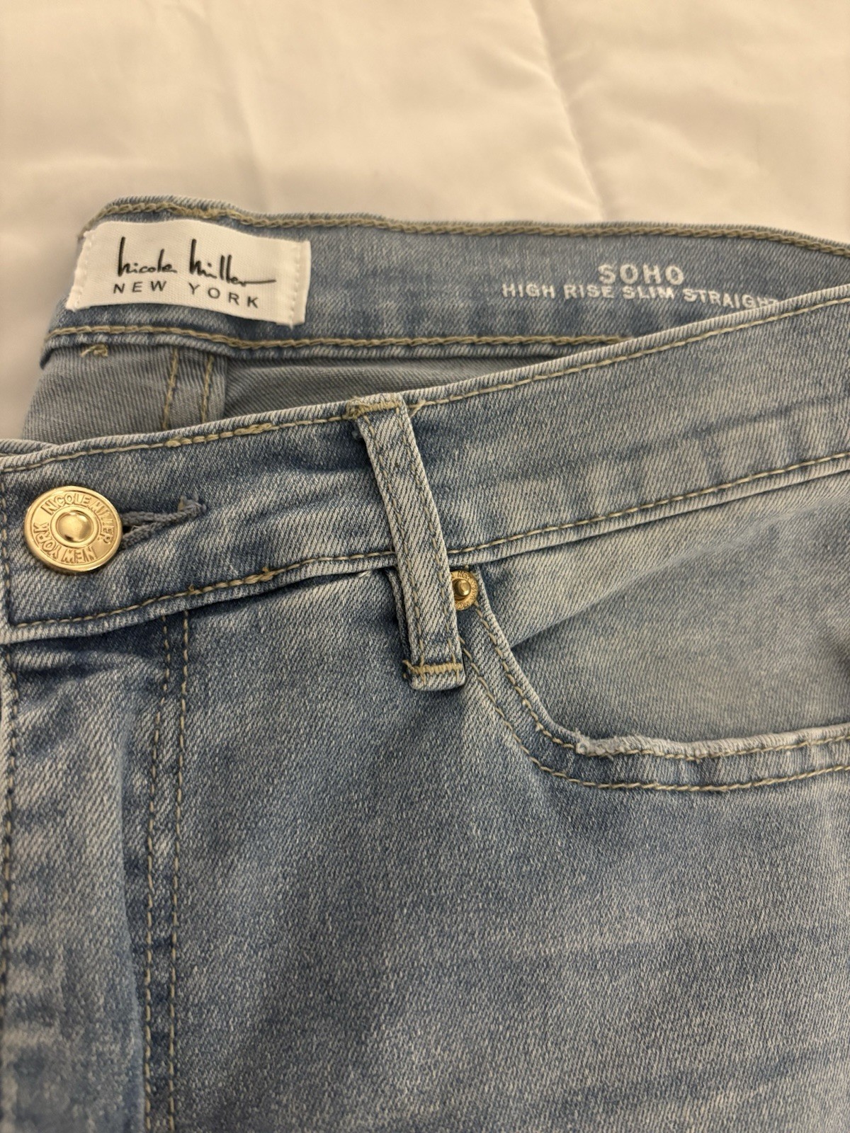 как выглядит Nicole Miller New York High Rise Slim Straight Stretch Jeans Light Blue 5-Pocket фото