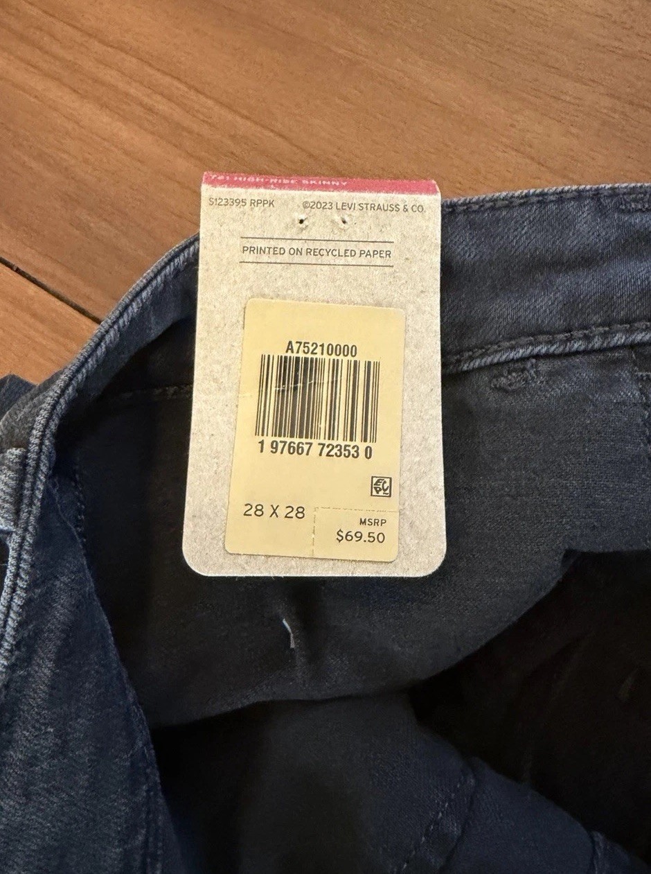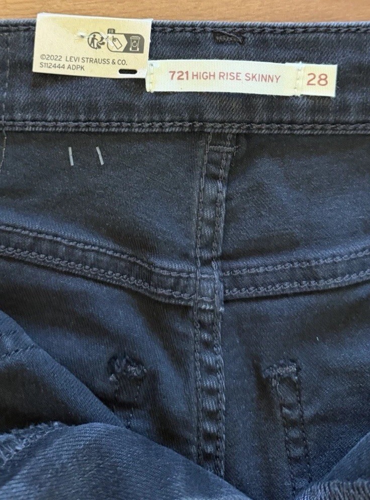 как выглядит Levis Womens 721 High Rise Skinny Jeans 5 Pocket 28x28 Black NWT 69 MSRP фото