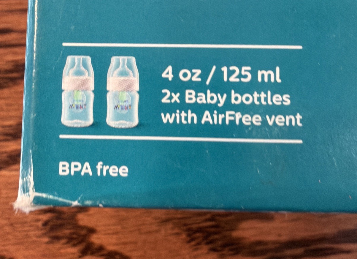 Philips Avent Anti-Colic Baby Bottles With AirFree Vent Clear 4oz Pack of 2 New