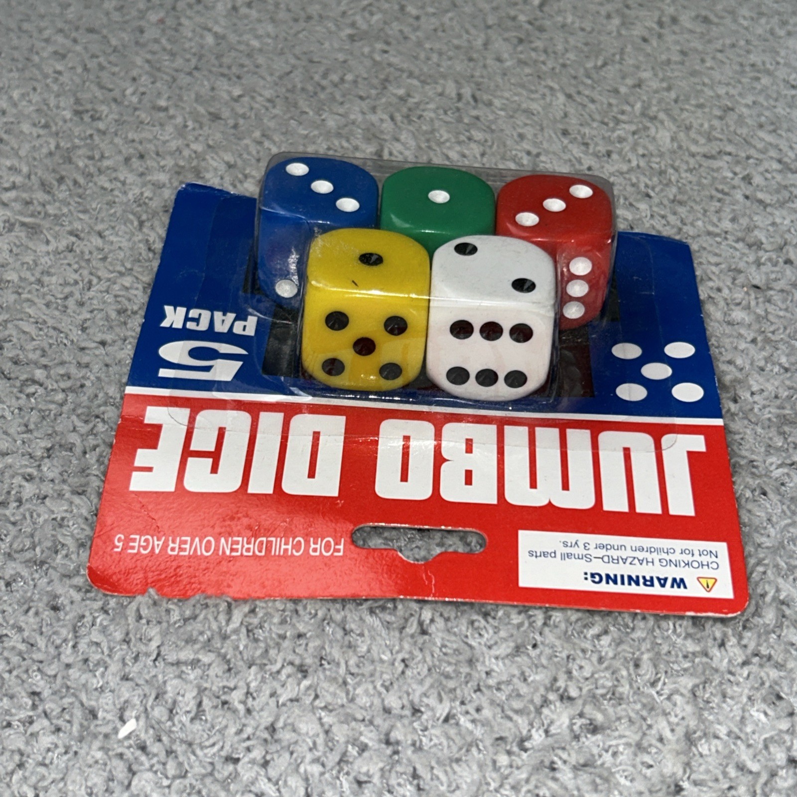 Jumbo Dice 5 Pack - Multi Color Dice - Brand New - Red Green Blue Yellow White