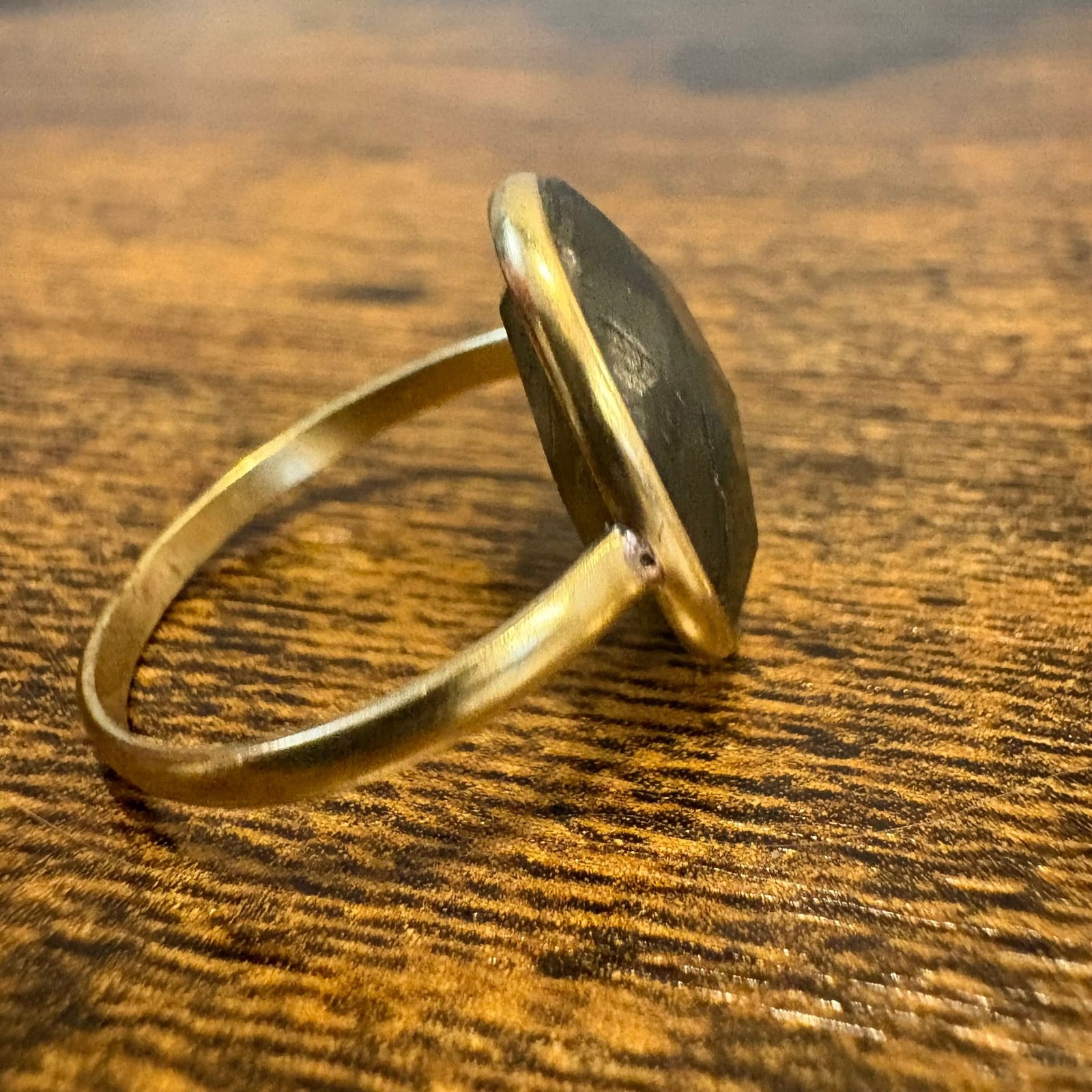 как выглядит Faceted Labradorite Ring Gold Tone Bezel Set Oval Statement Size 7.5 фото