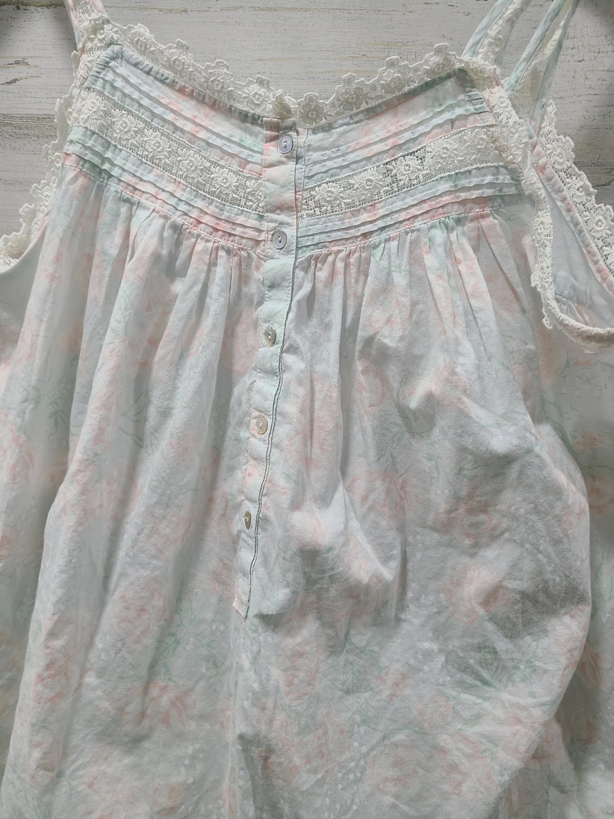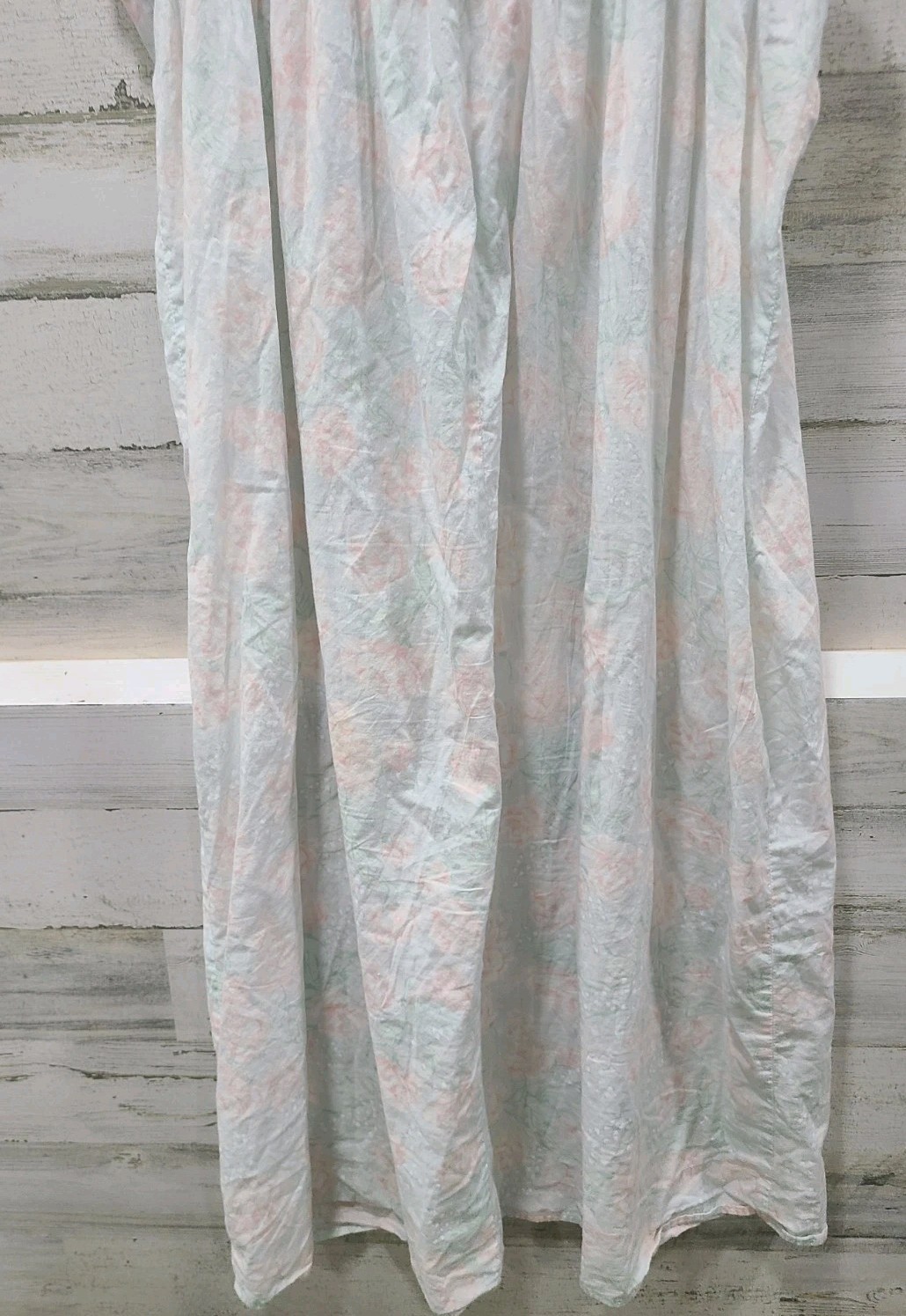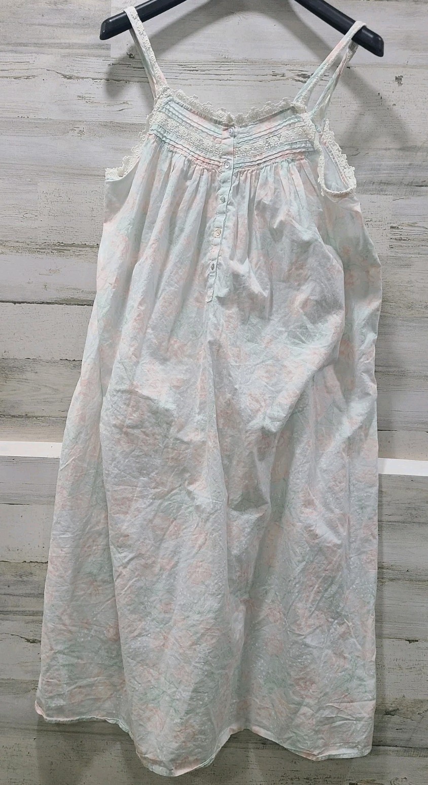 Eileen West Cotton Floral Lace Trim Button Front Nightgown Nightie Size Large