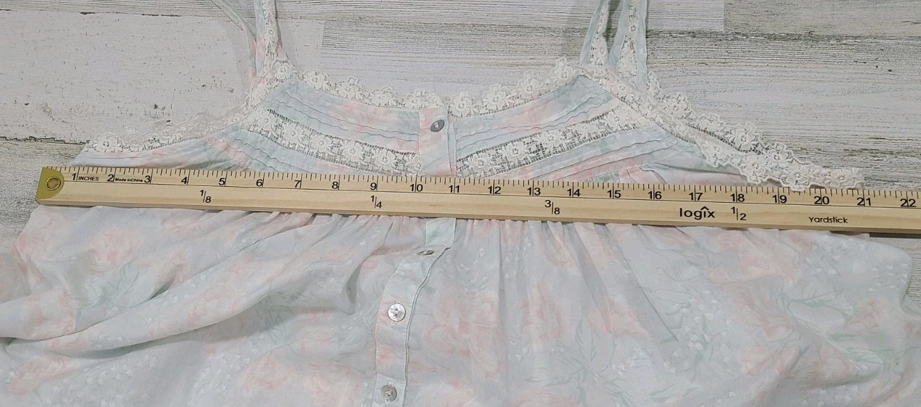 как выглядит Eileen West Cotton Floral Lace Trim Button Front Nightgown Nightie Size Large фото