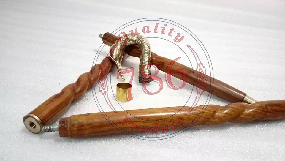 Brass Vintage Style Swan Head Handle Victorian Spiral Wooden Walking Stick Cane