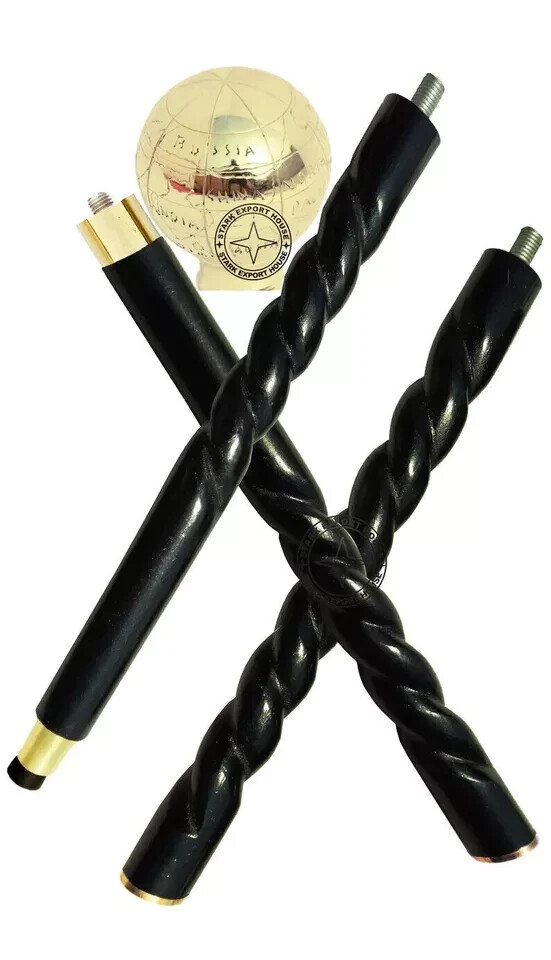 Antique Spiral Wooden Walking Stick Handmade Globe Brass Head Handle Designer
