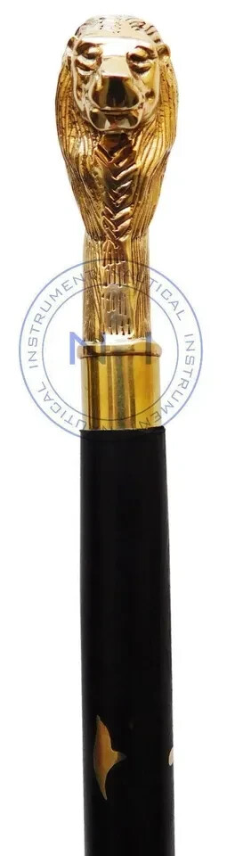 Solid Brass Lion head Handle Vintage Designer Wooden Walking Stick Cane Antique