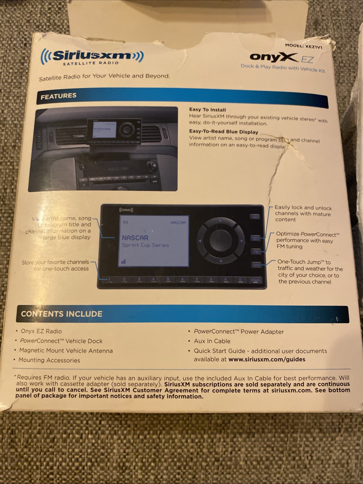 Sirius XM Satellite Radio Onyx EZ Radio XEZ1V1 Vehicle Kit New Open Box