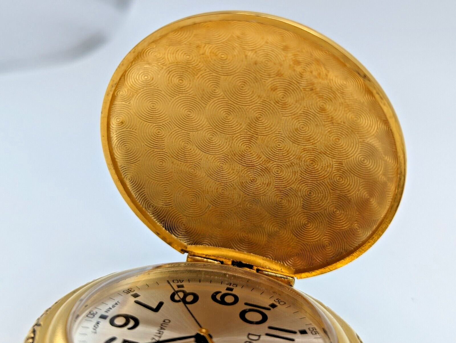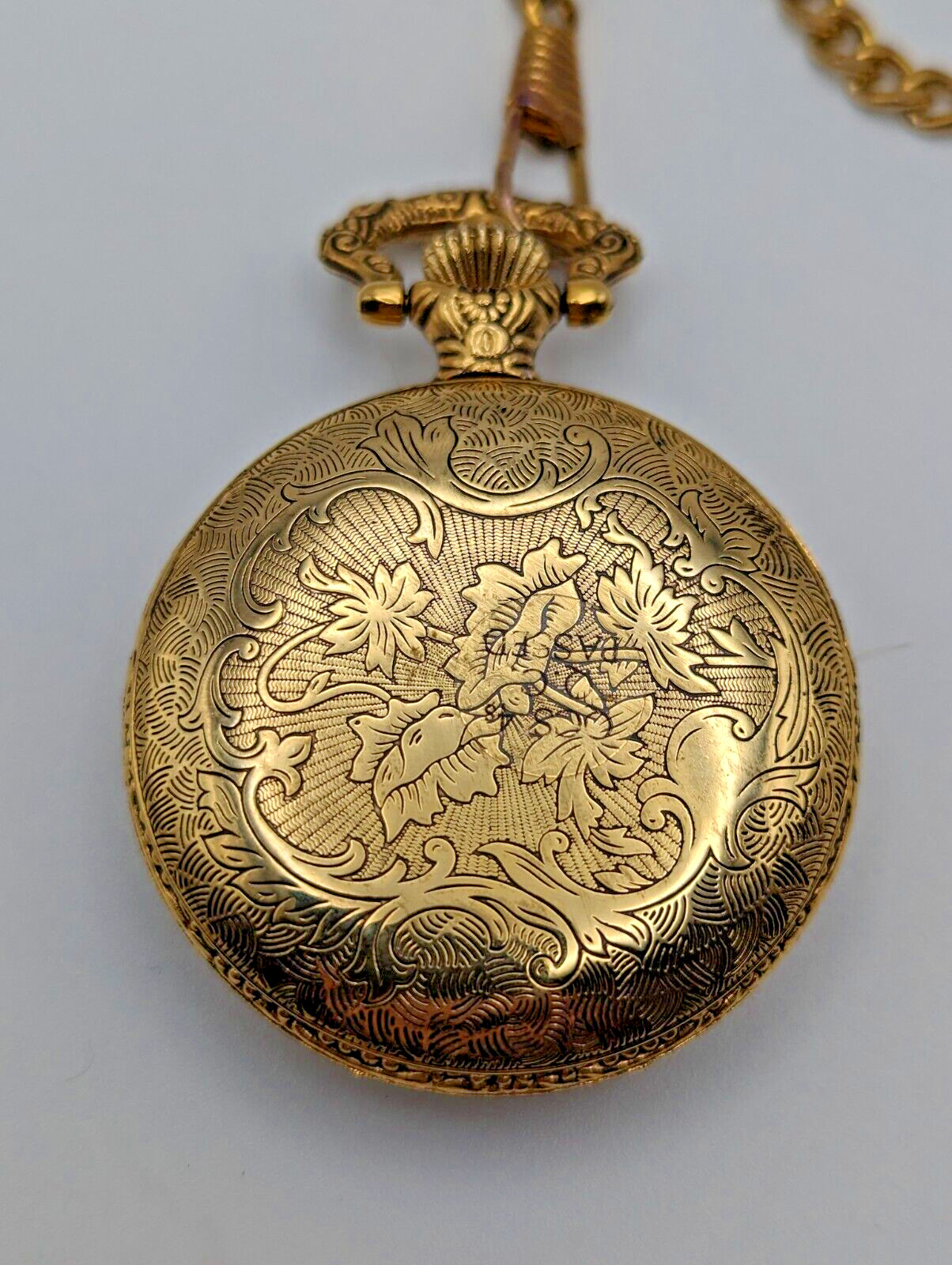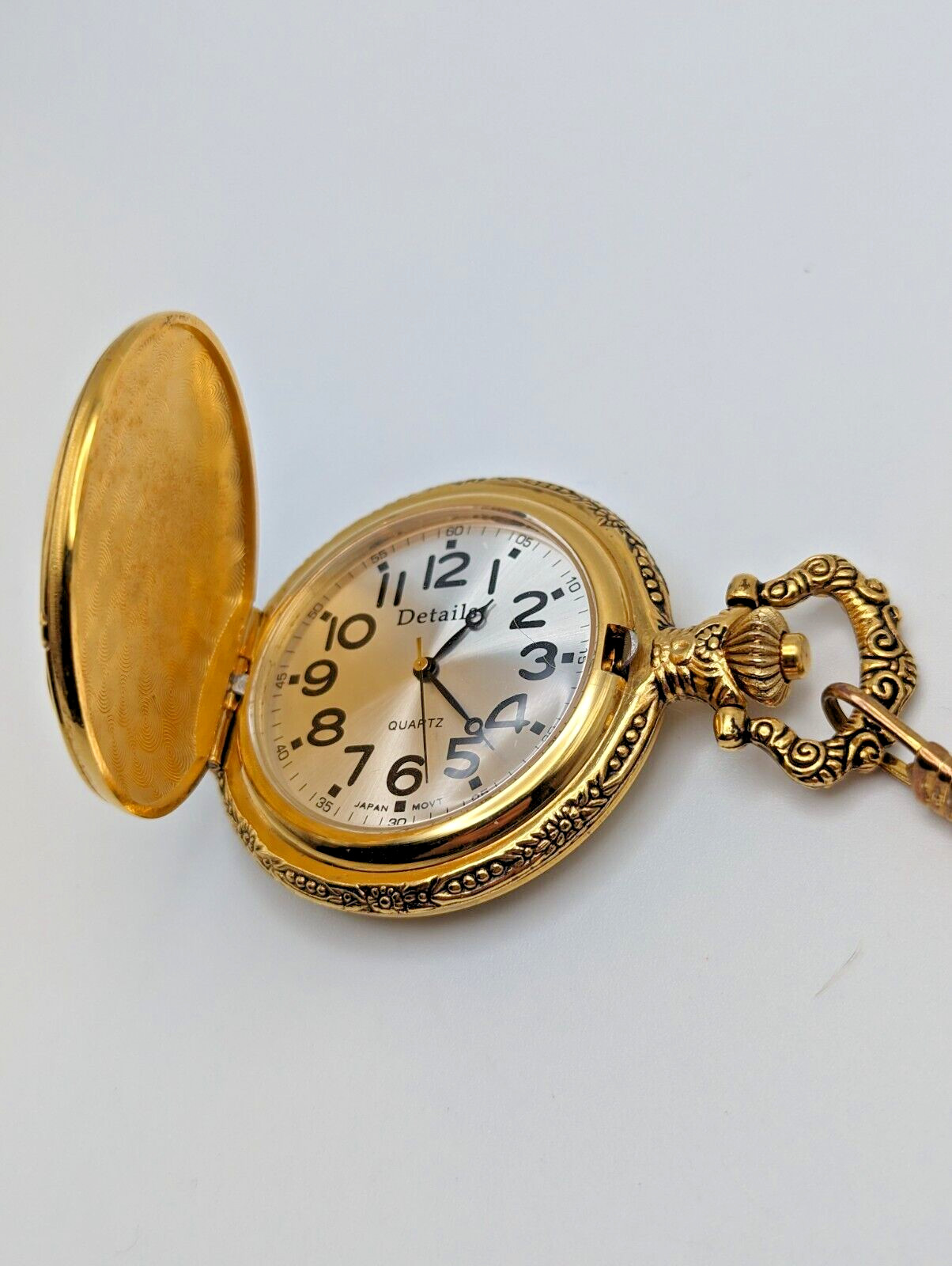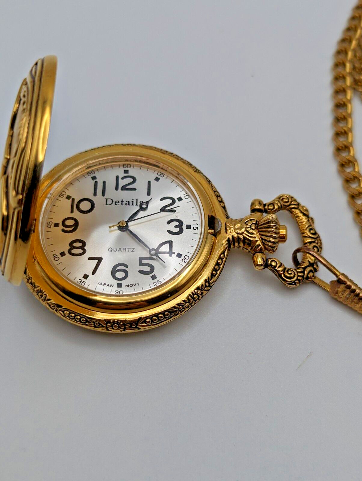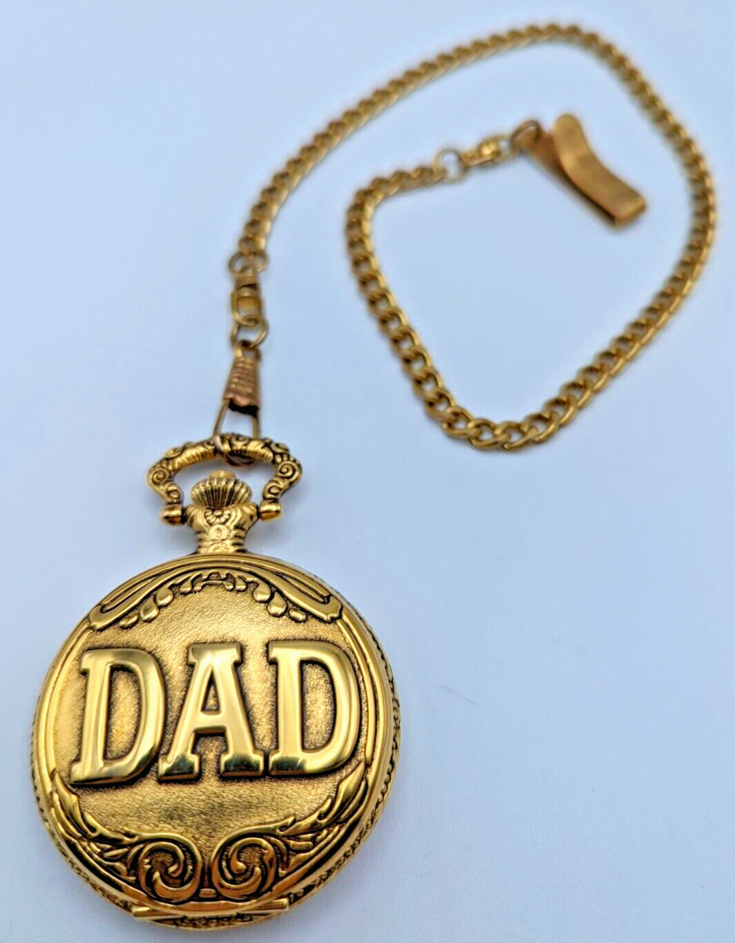 Details DAD Pocket Watch with Chain Gold Tone New Battery Father's Day Gift