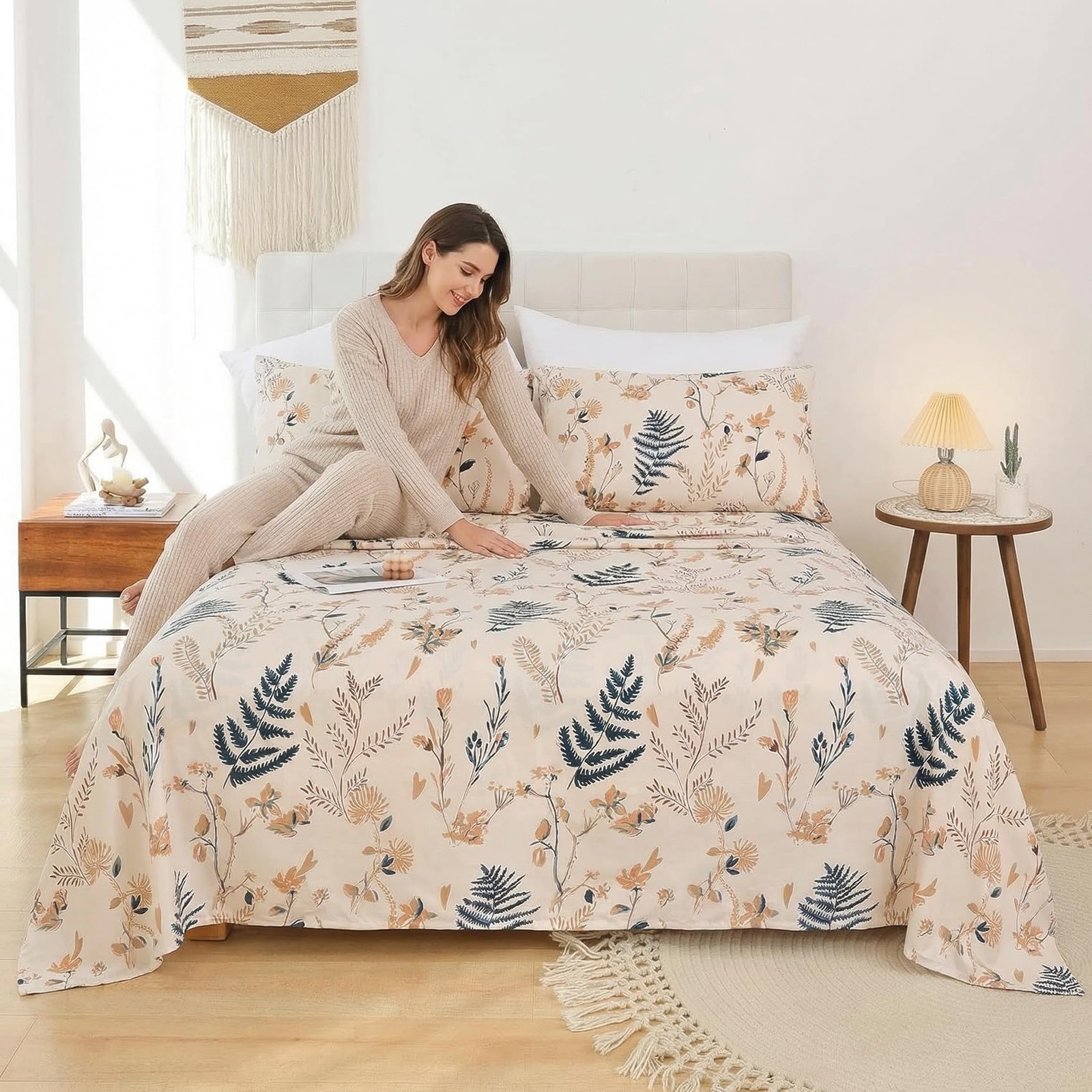 Boho Floral Printed Set Queen Size 4 Piece, Soft Botanical Pattern Microfiber...