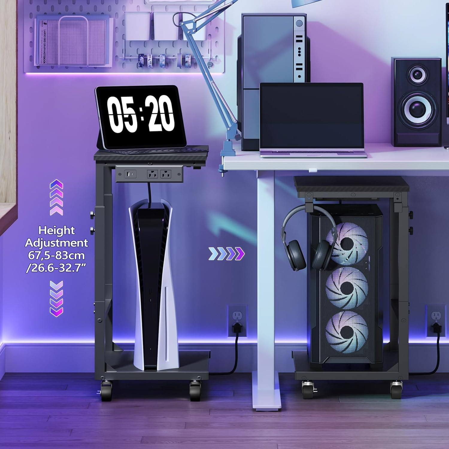 Computer Tower Stand with Power Outlet, Mobile PC Stand for Floor, Height Adjust