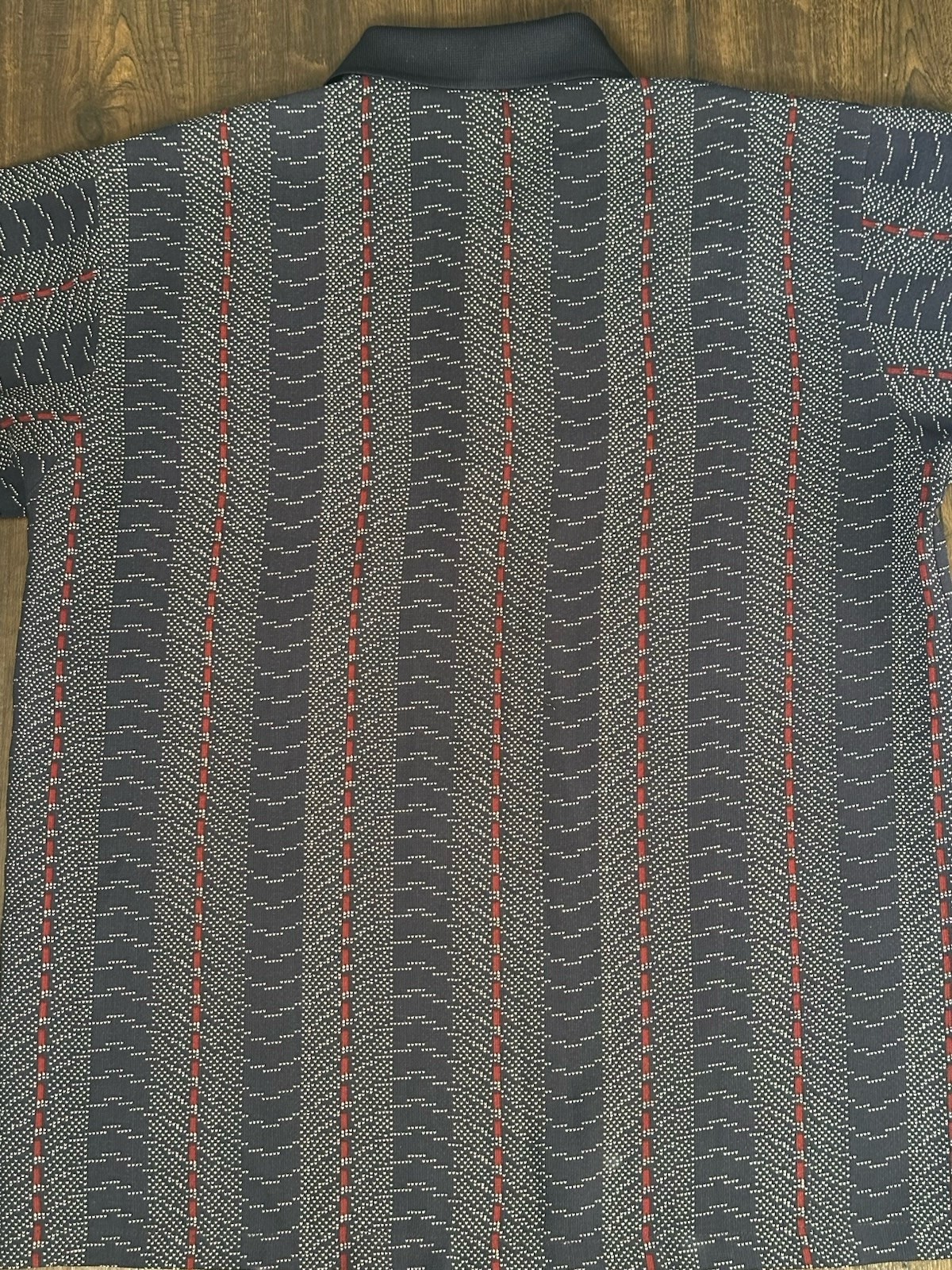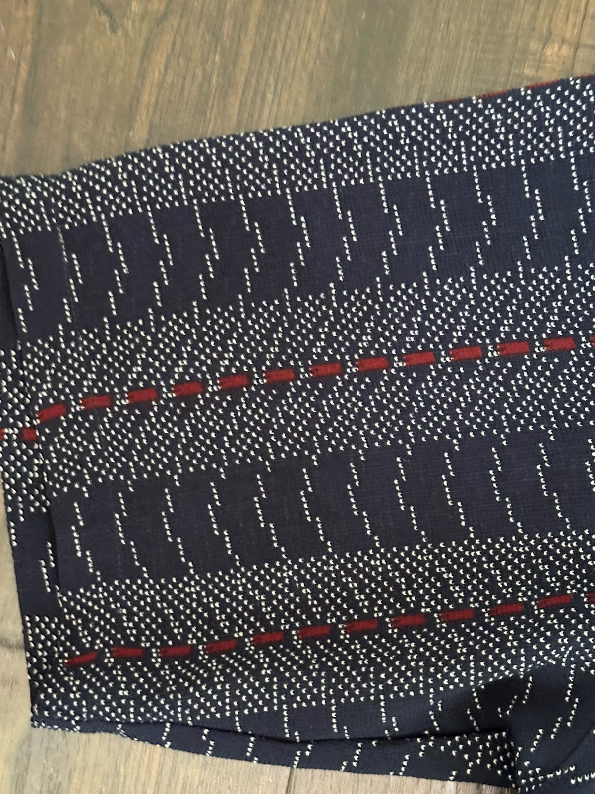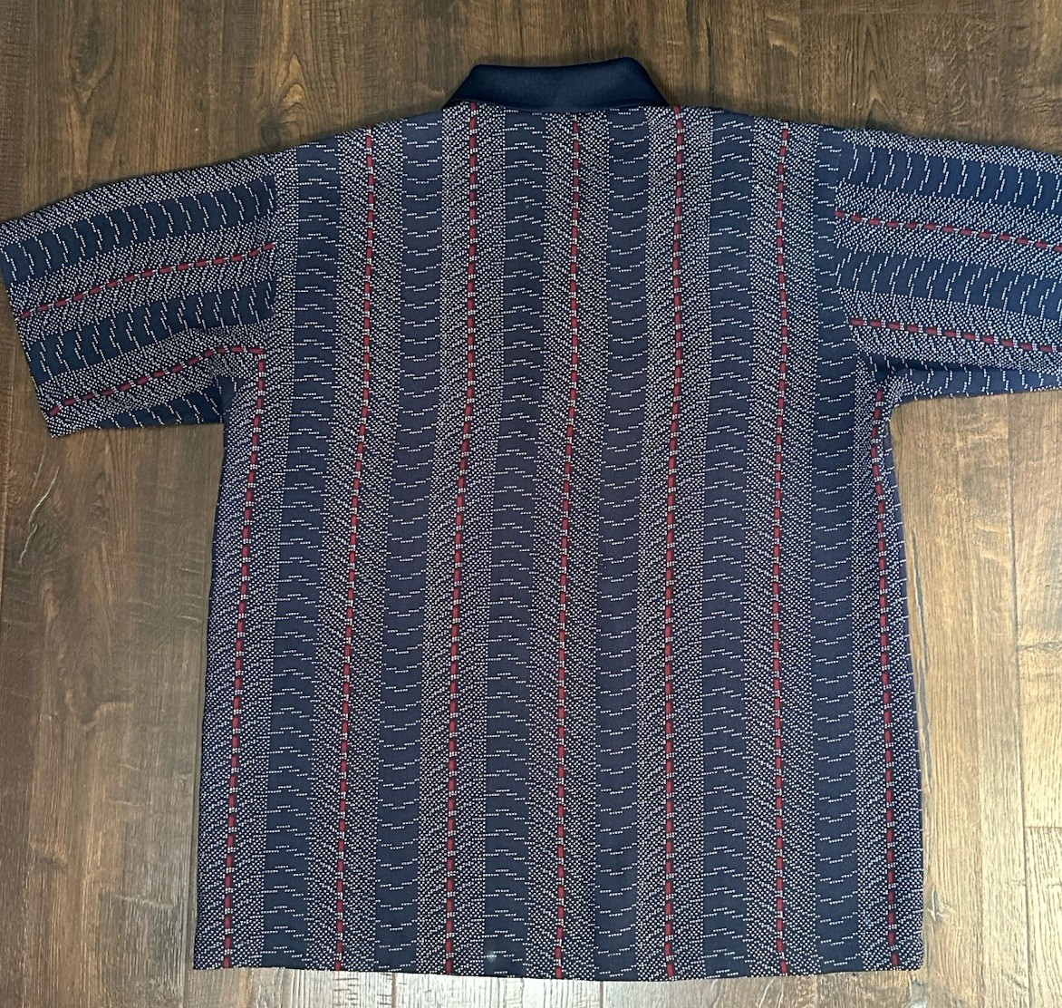 как выглядит Vintage Renli Shirt Men s Small, Blue With Red Geometric Pattern фото
