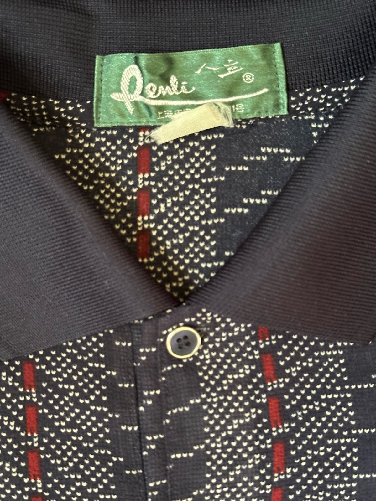 Vintage Renli Shirt Men s Small, Blue With Red Geometric Pattern