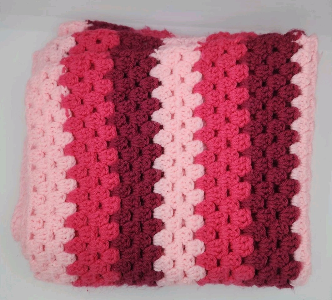 как выглядит Pinks Light And Dark Pink Handmade Crochet Baby Girl Blanket Lap Throw 27W x 46L фото