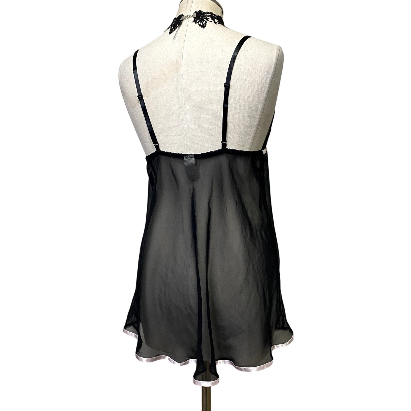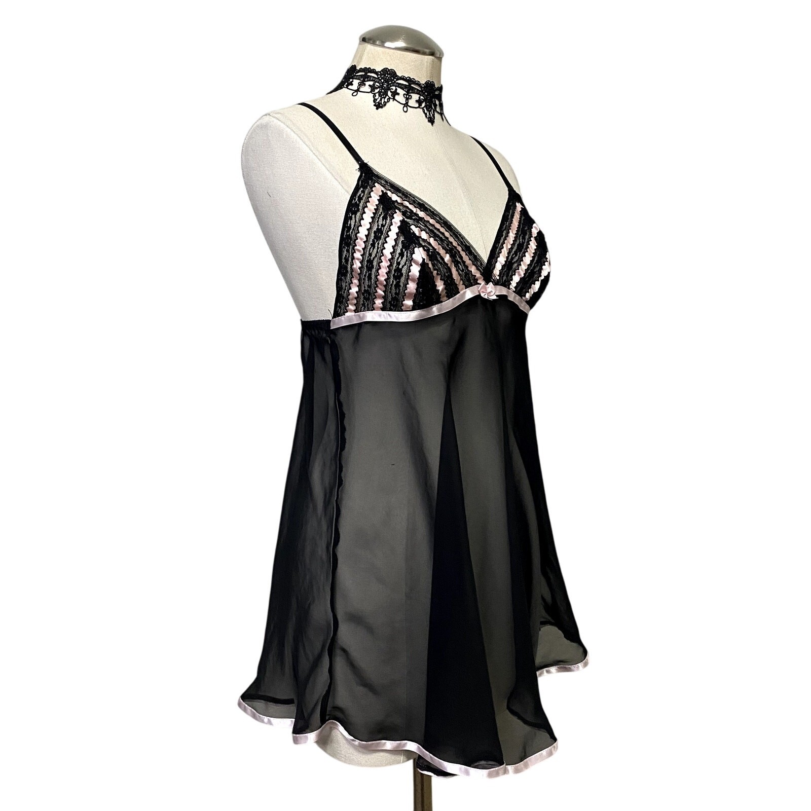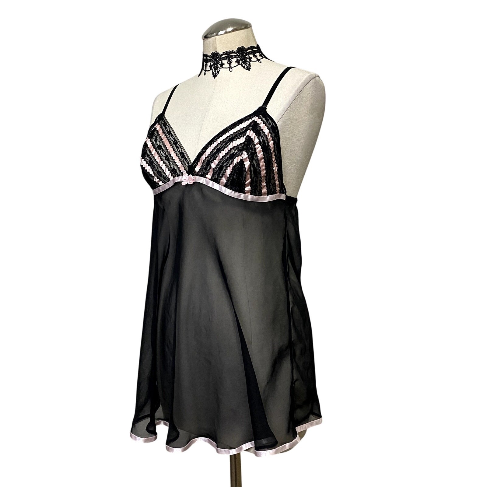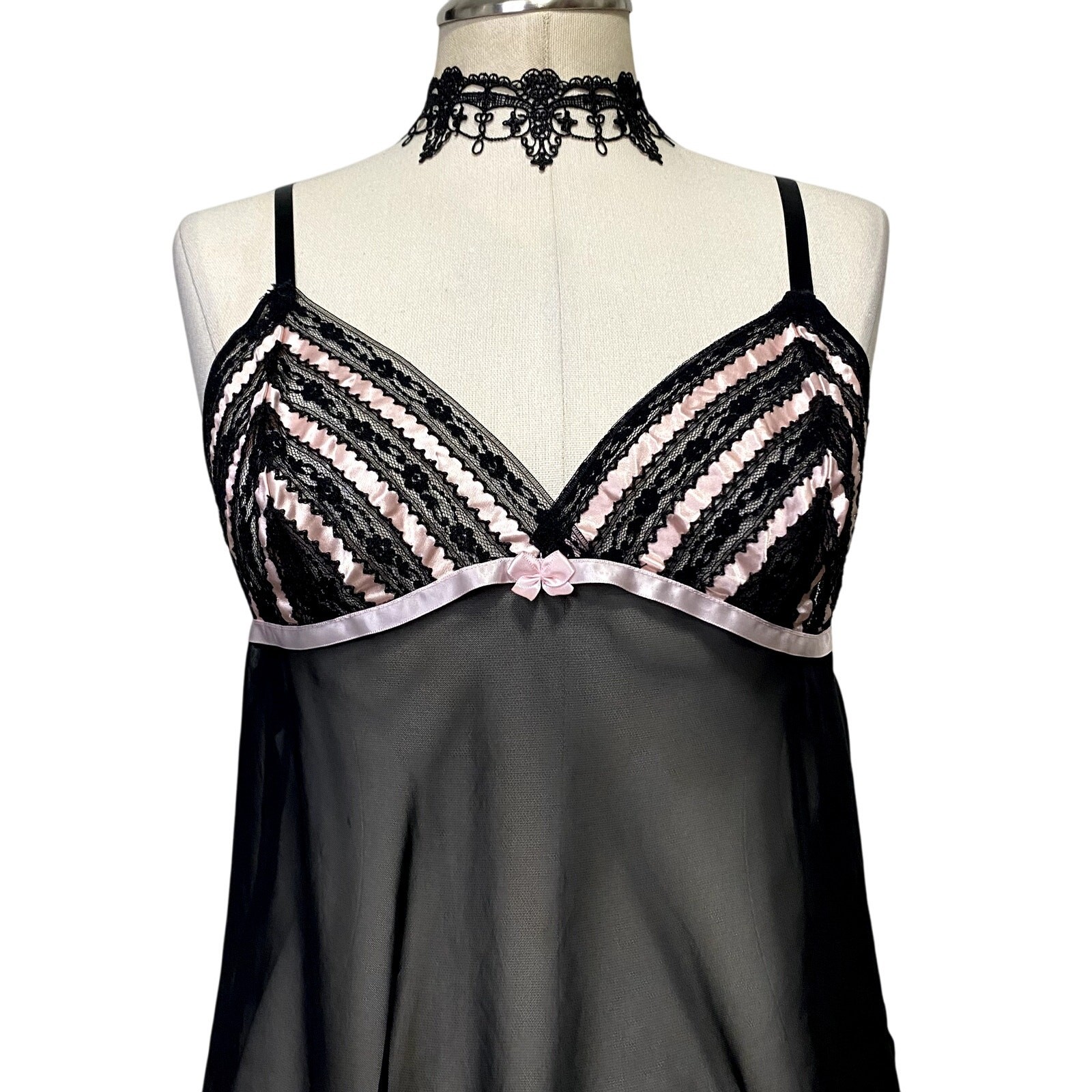 Pink and Black Sheer Gothic Emo Alt Ribbon Baby Doll Lingerie Slip Dress