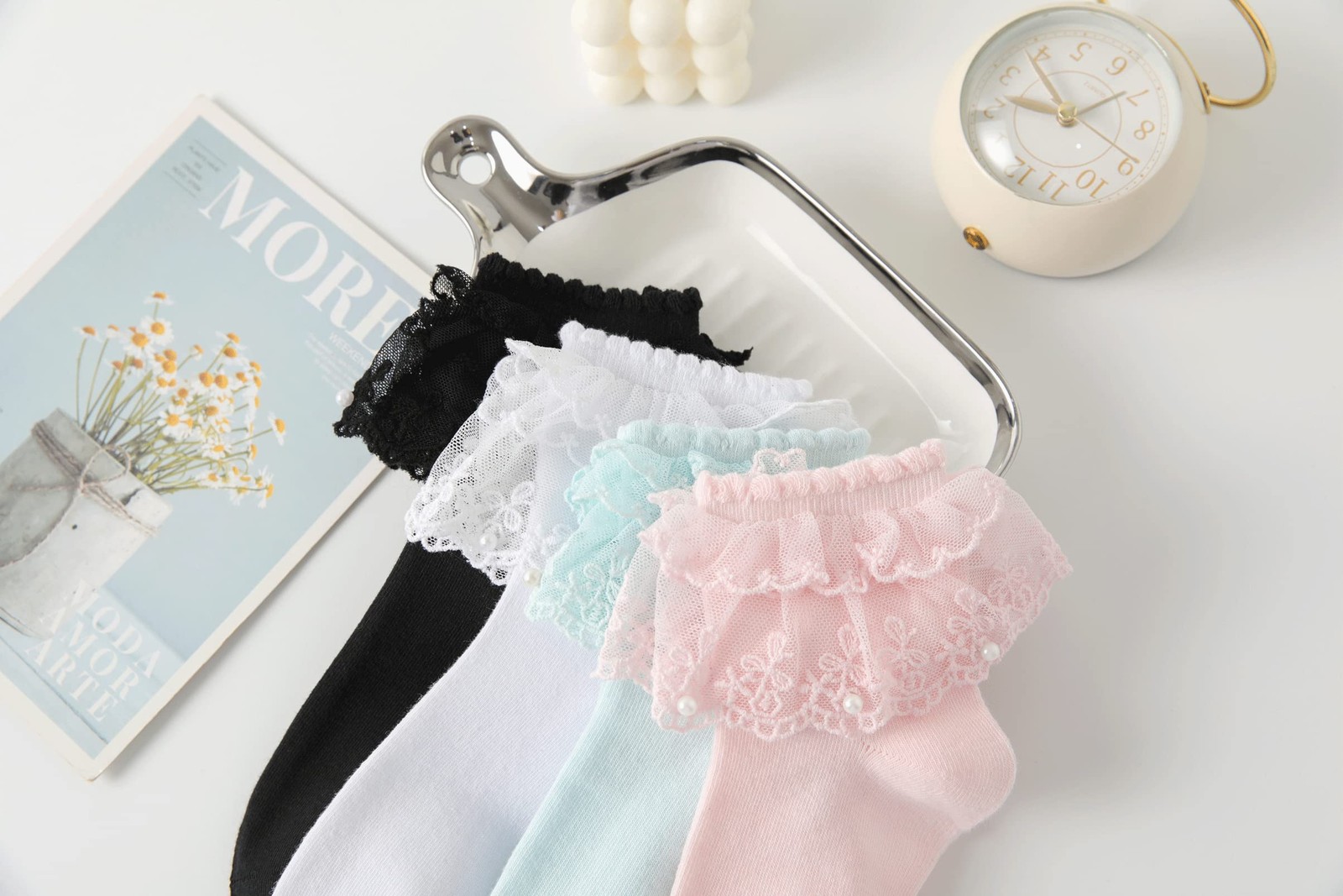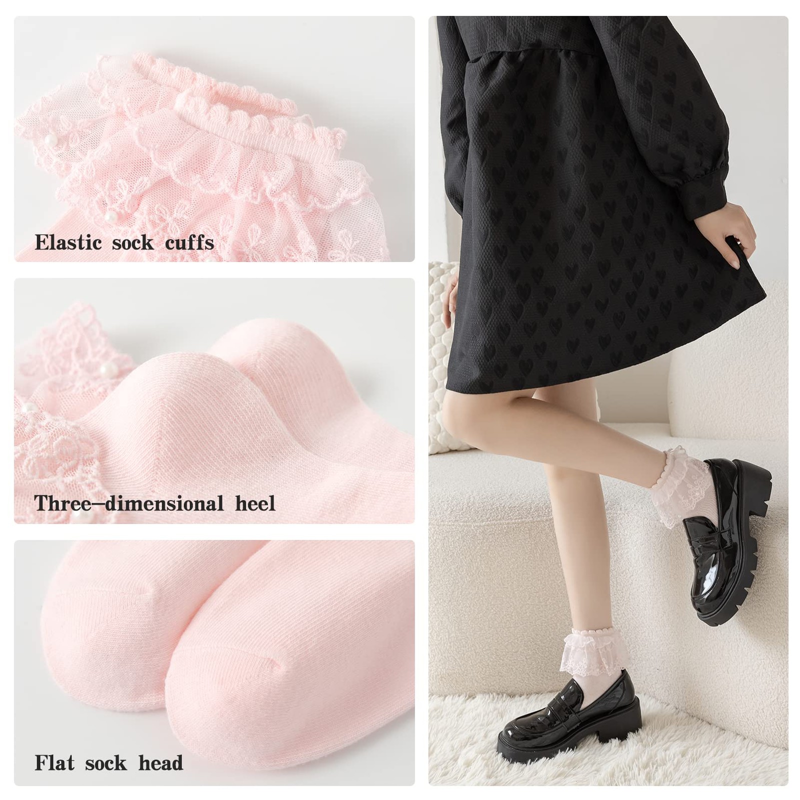 как выглядит AMHRLINGTO Lace Ruffle Frilly Ankle Socks for Women - 5-9, White-1 Pairs фото