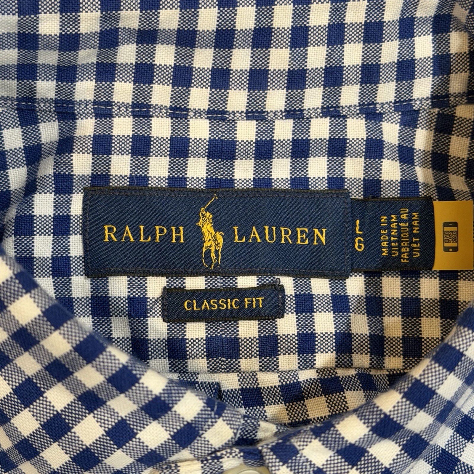 Ralph Lauren Men s Button Down Shirt Classic Fit Large Blue Gingham Pony Polo
