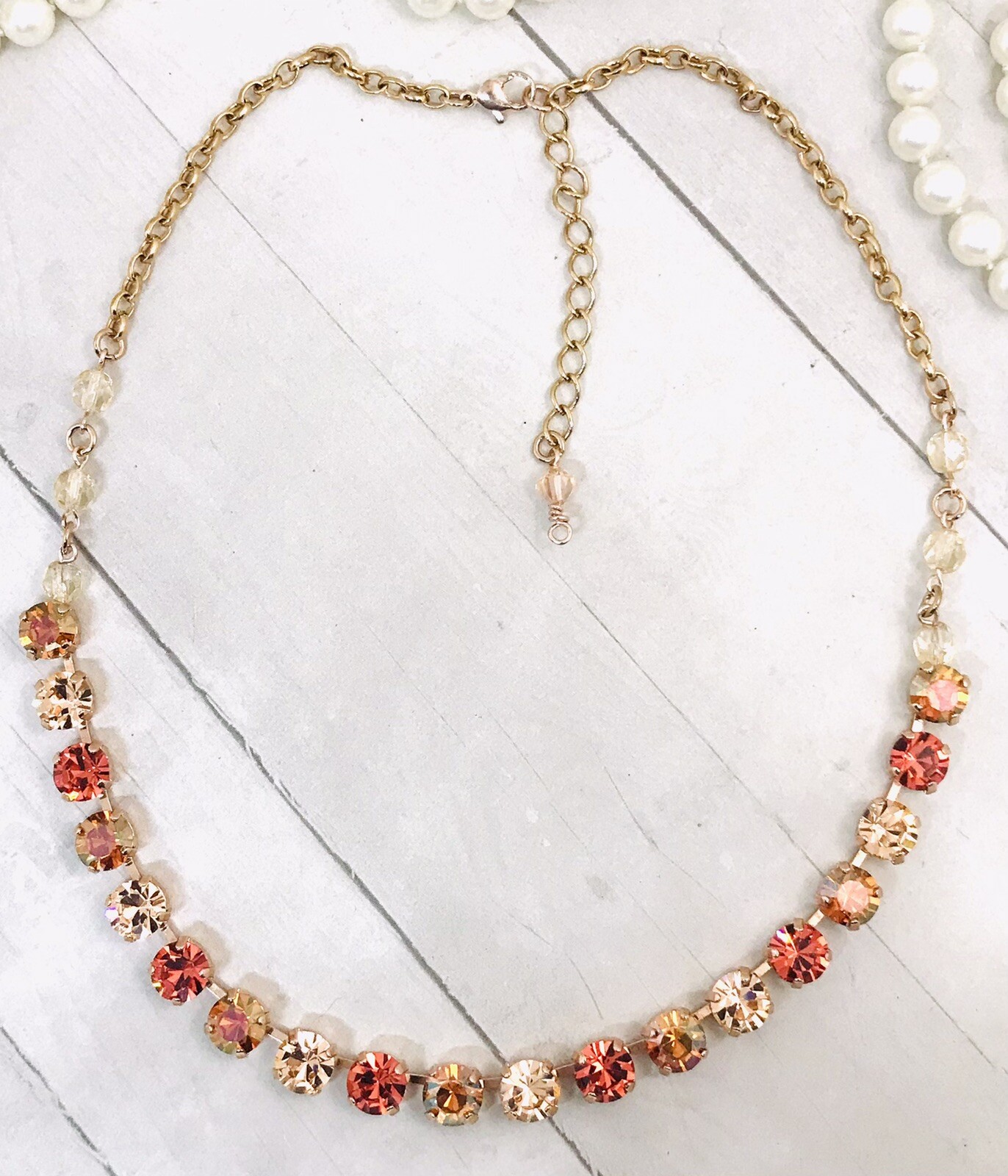 Rose Gold Plated CHILI PEPPER PEACH Cup Chain Tennis Necklace