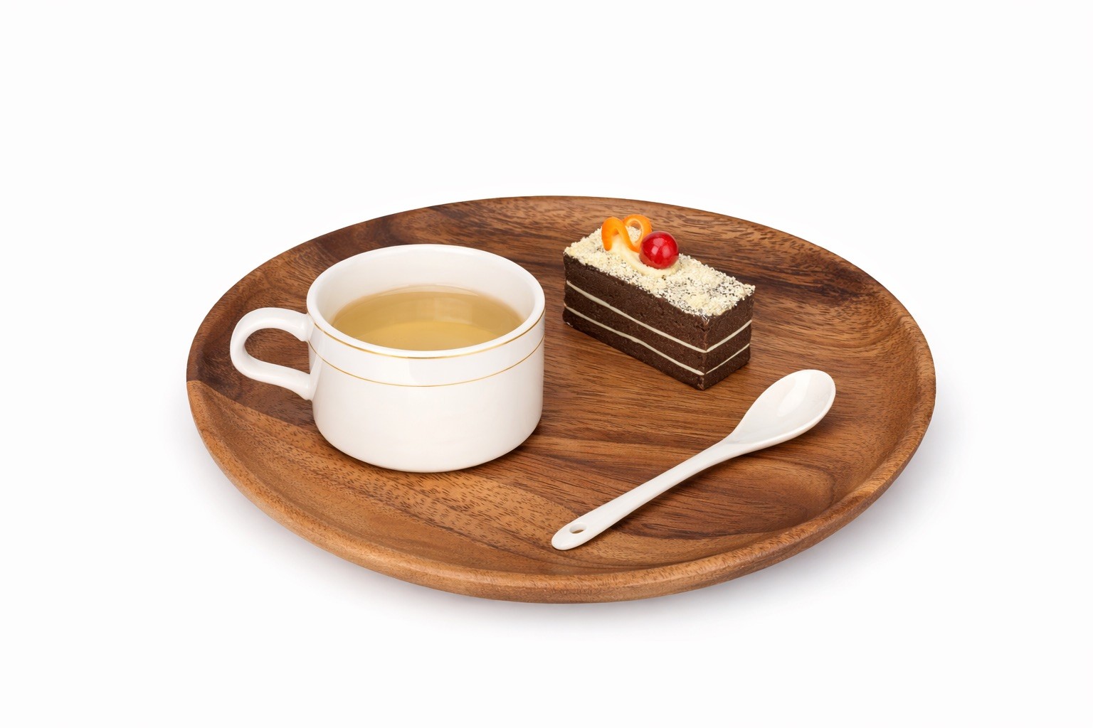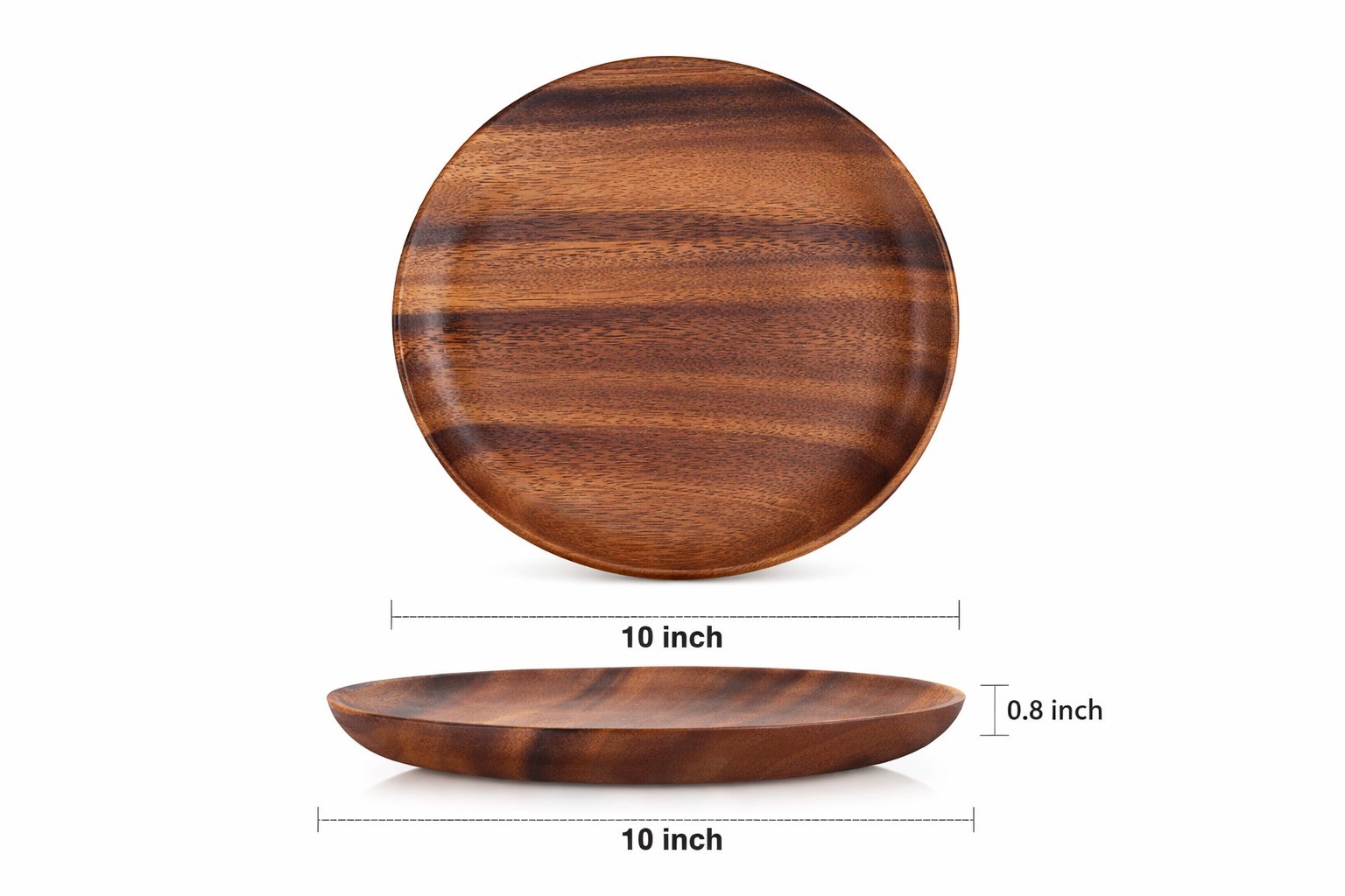 10 Inch Best Acacia Wooden Dinner Plates Set of 2, Round Wood Serving Tray Woode