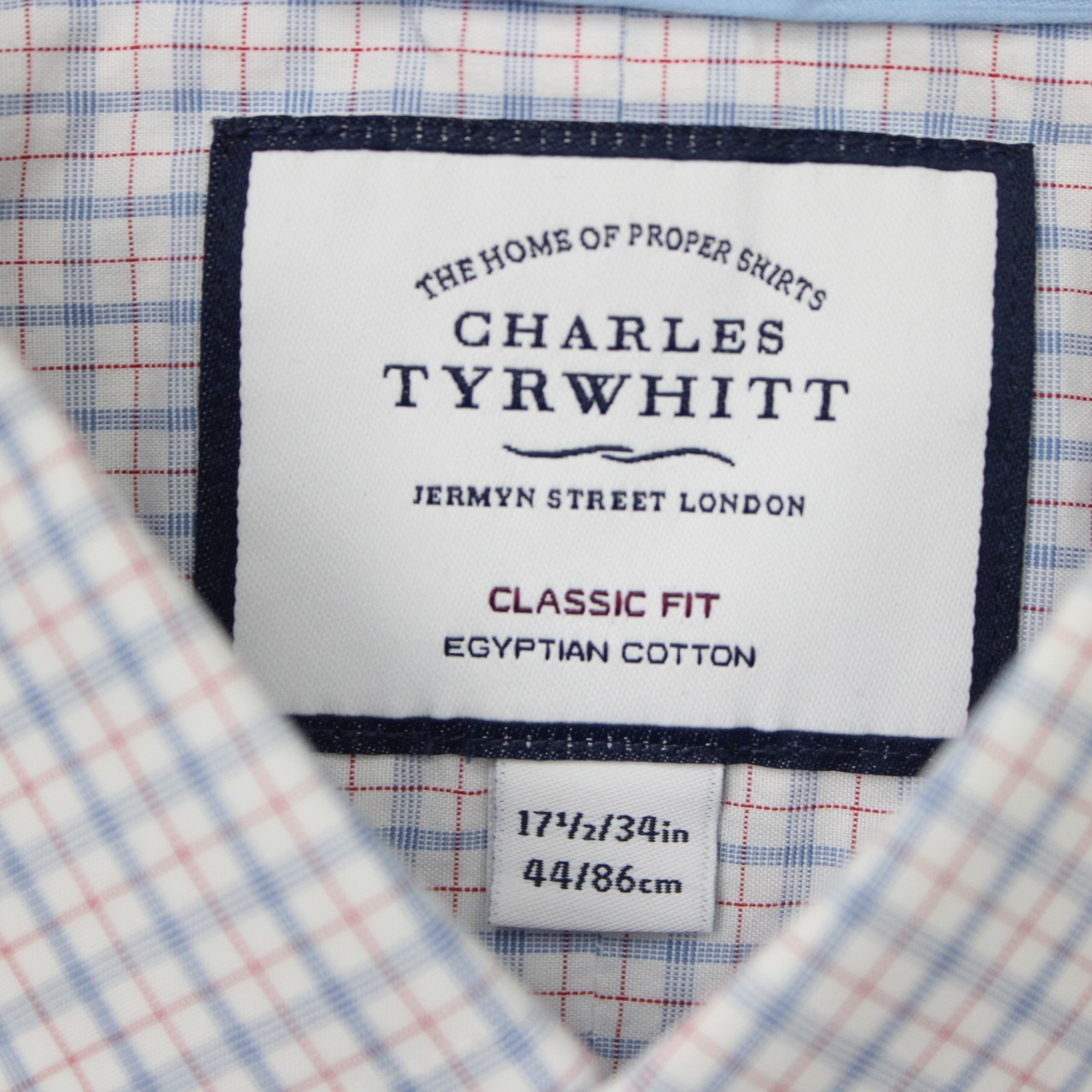 как выглядит Charles Tyrwhitt Shirt Mens 17 1/2, 34 Blue/Red Classic Fit Egyptian Cotton L/S фото
