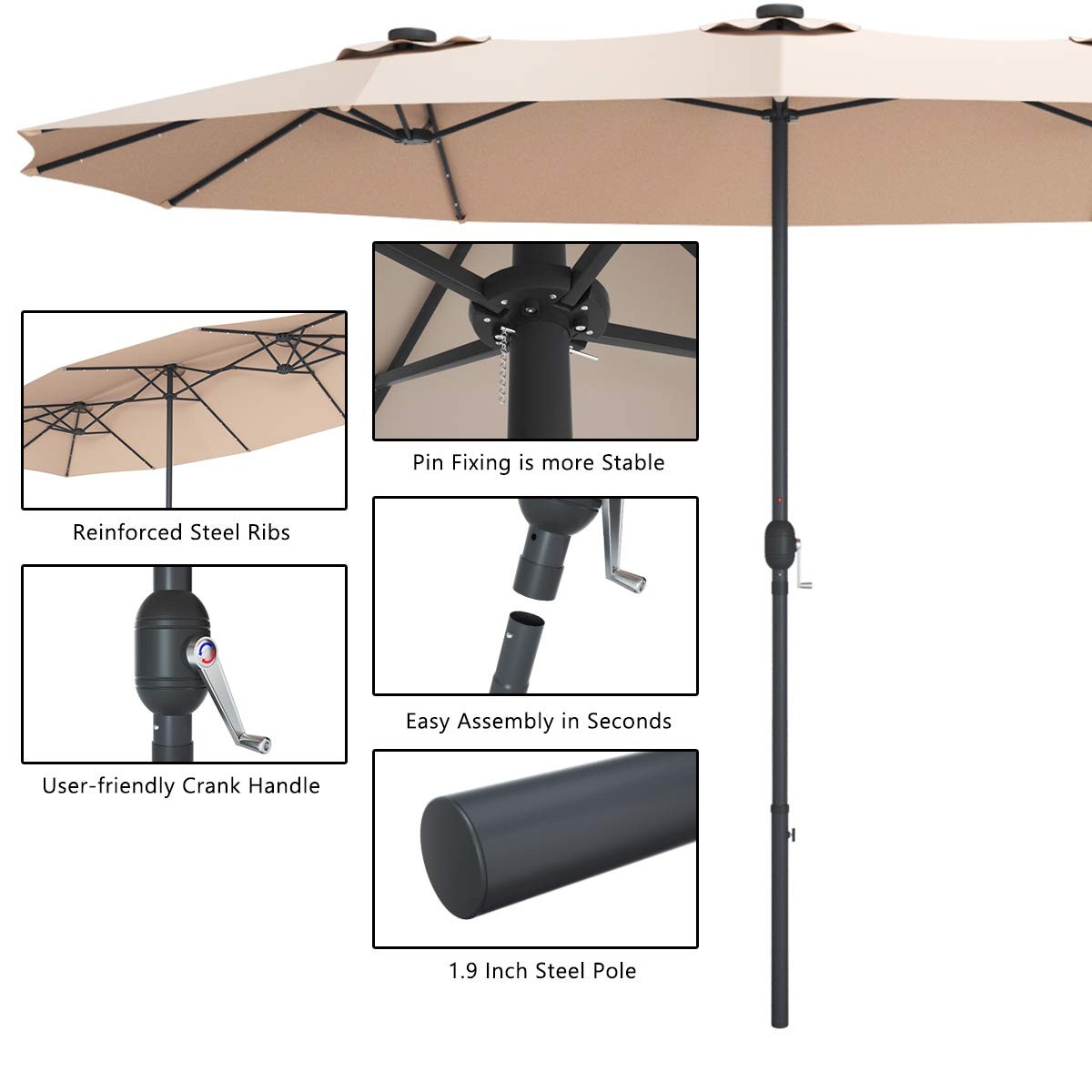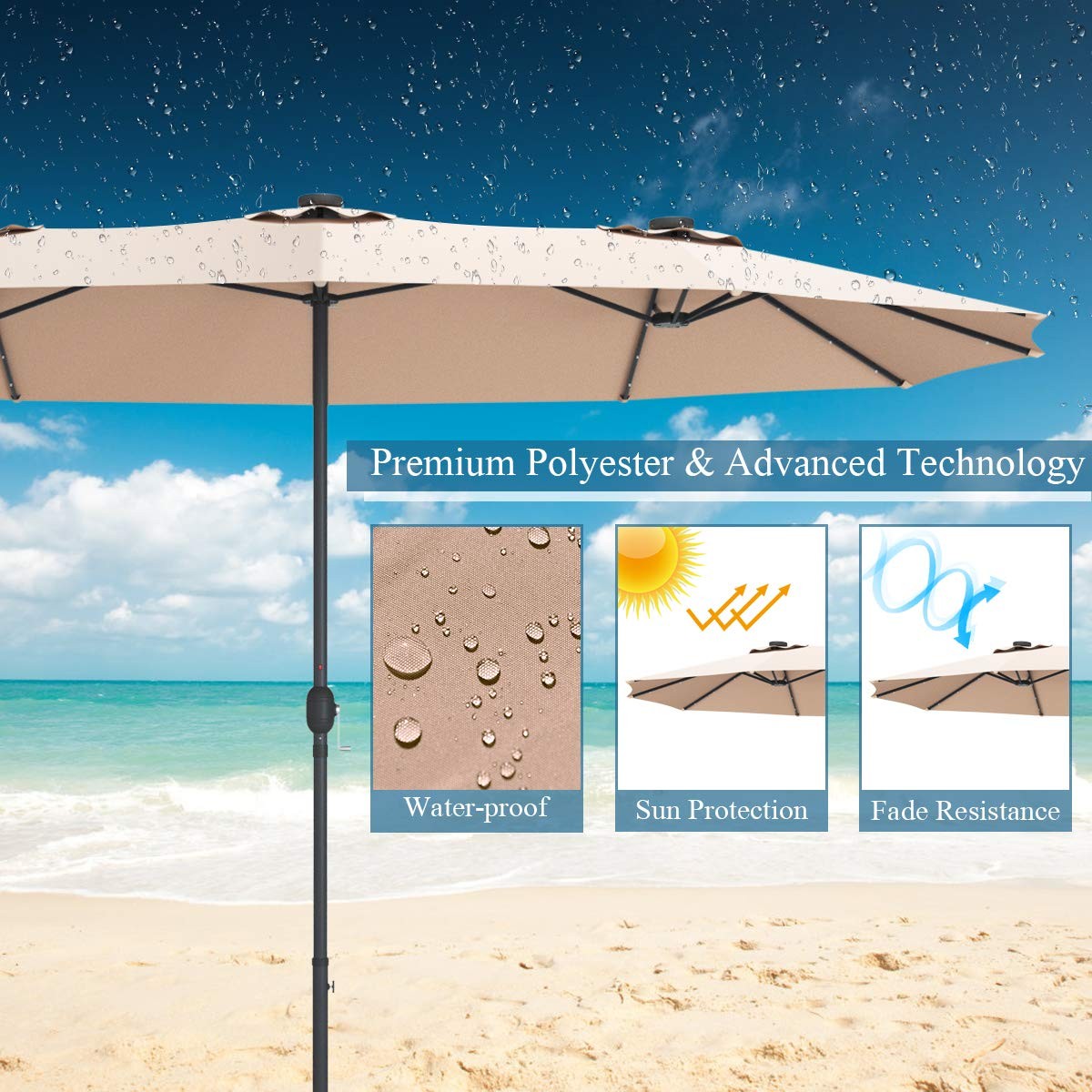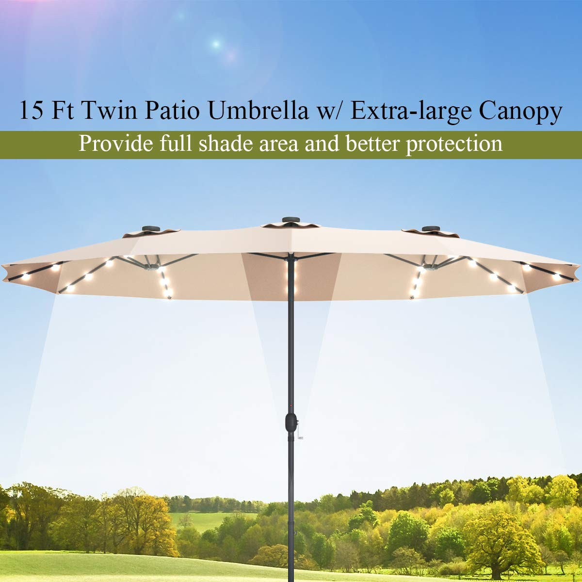 15Ft Double Sided Patio Umbrella with Solar Lights,Extra Large Rectangle Outdoor