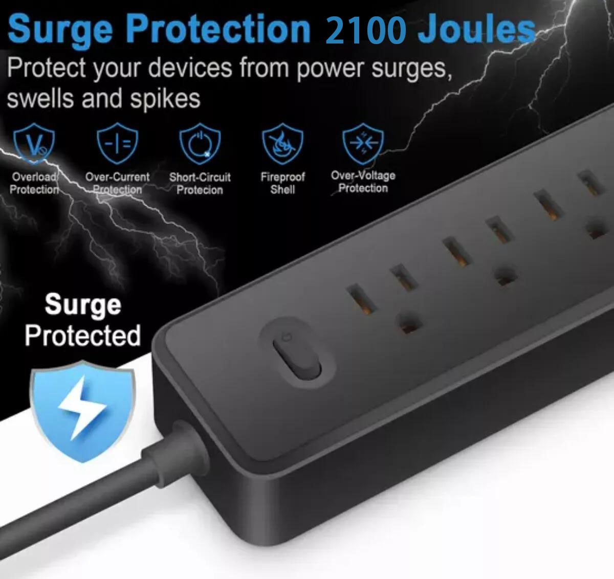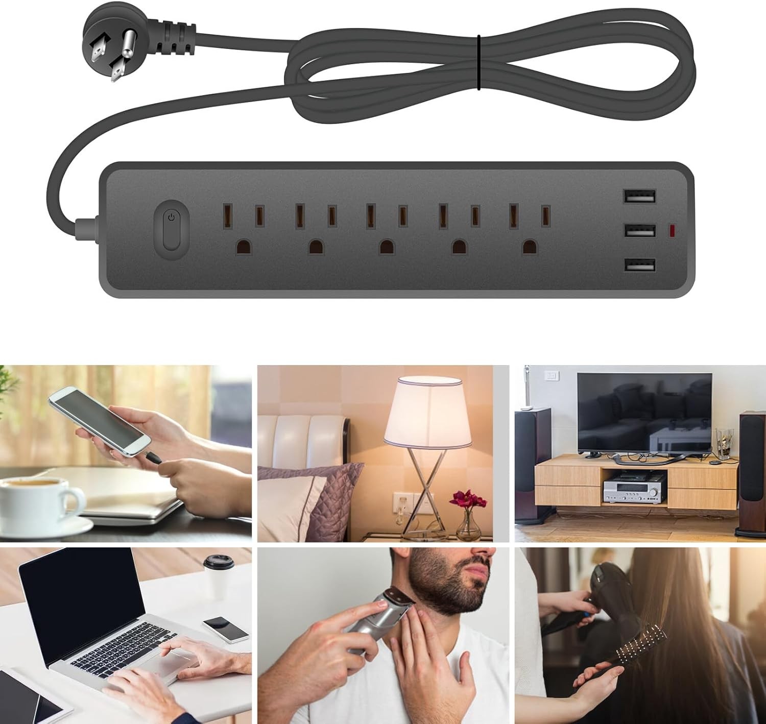 Wall Mountable USB Surge Protector Power Strip 3 USB Ports 4 Outlet Plugs USA