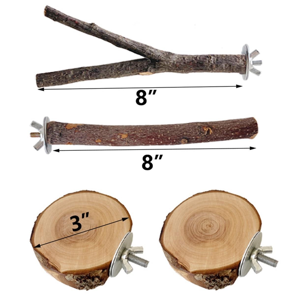 4PCS Natural Wood Bird Perches for Cage, Parrot Cage Perch Medium, 4perches