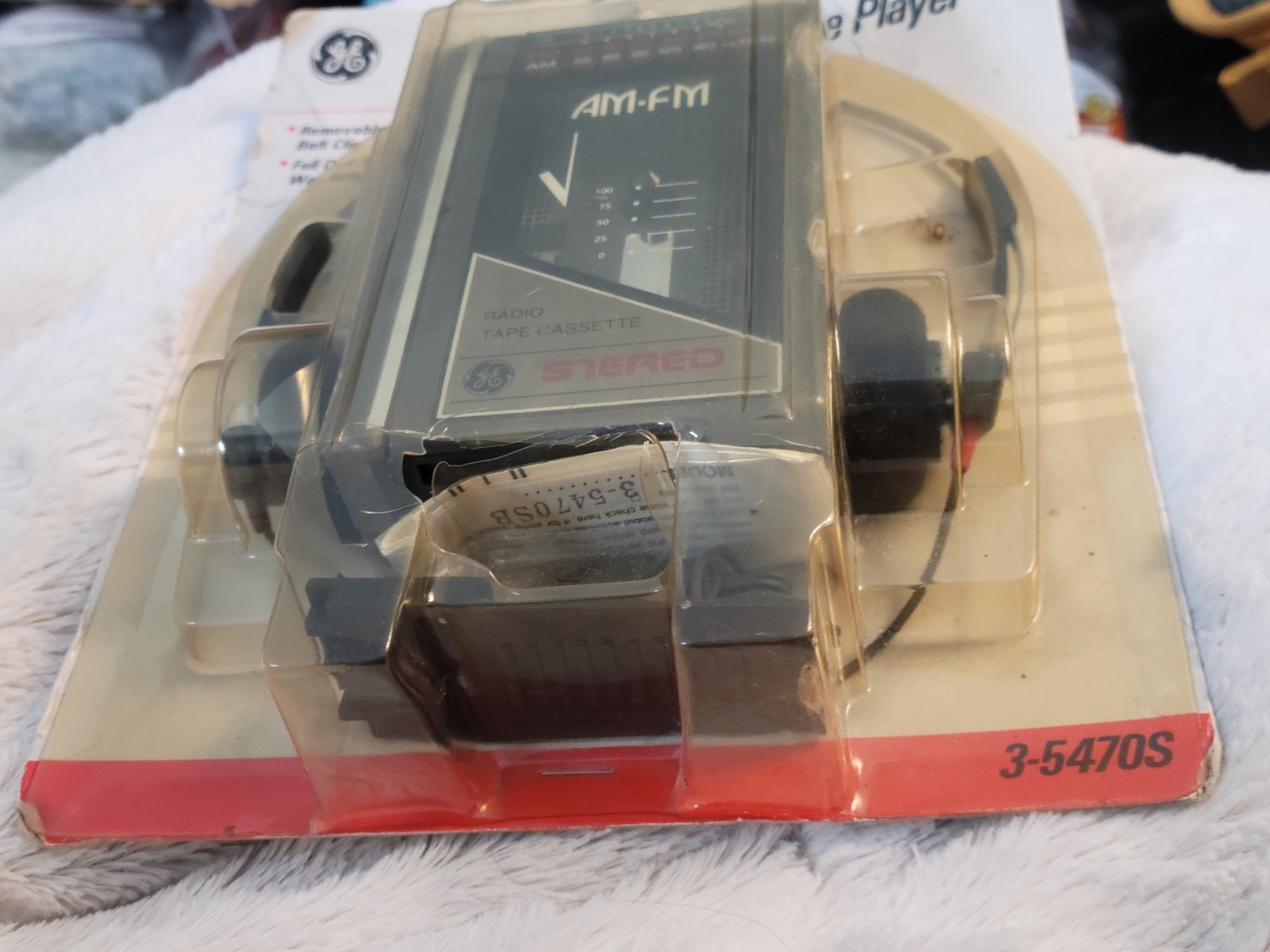 как выглядит GE AM/FM Stereo Cassette Player Headphones Batteries NEW VTG NIP 35470S Case Dmg фото