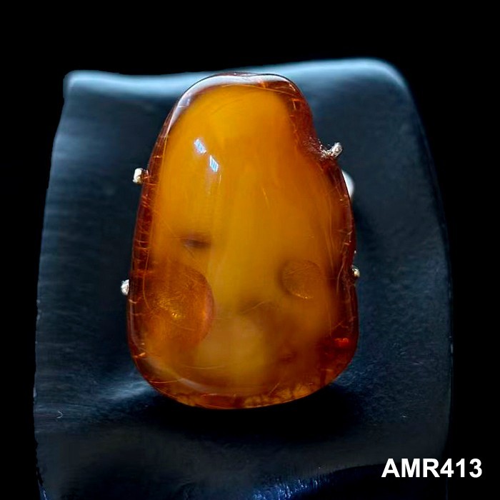 Vintage European Natural Baltic Amber Rings, Size adjustable