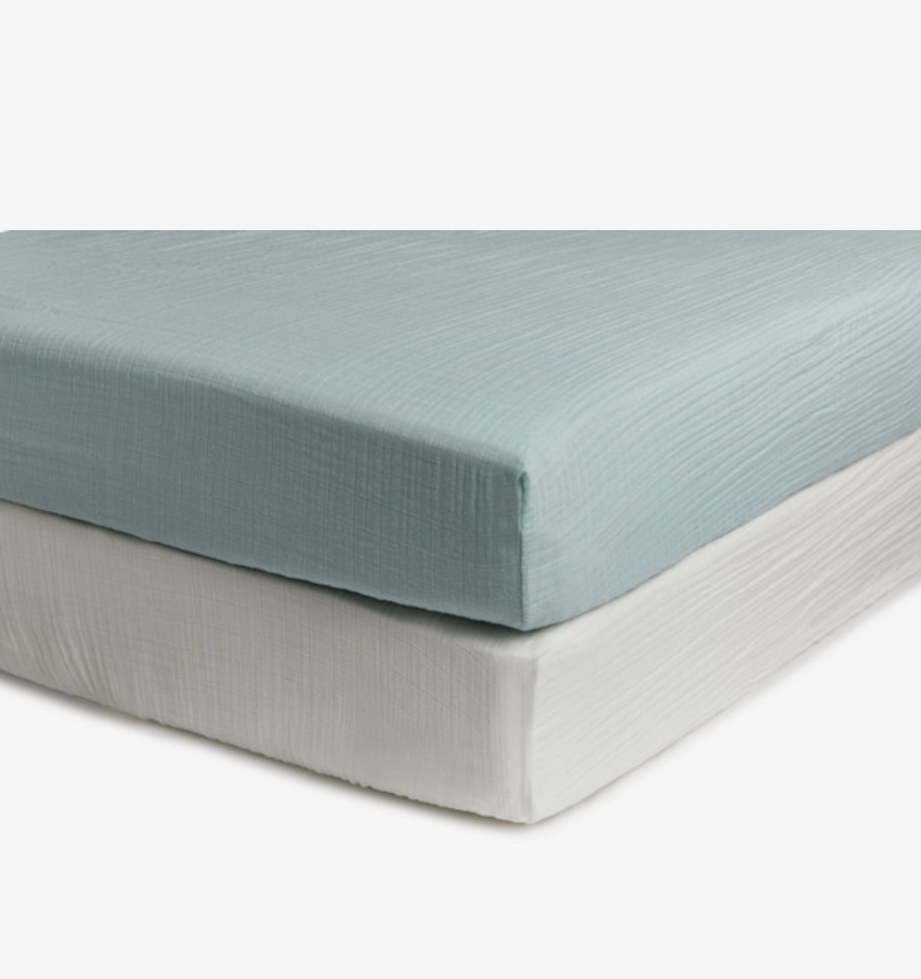 Soundly Organic Cotton Muslin Crib Sheet 2 Pack Blue Haze/snow White
