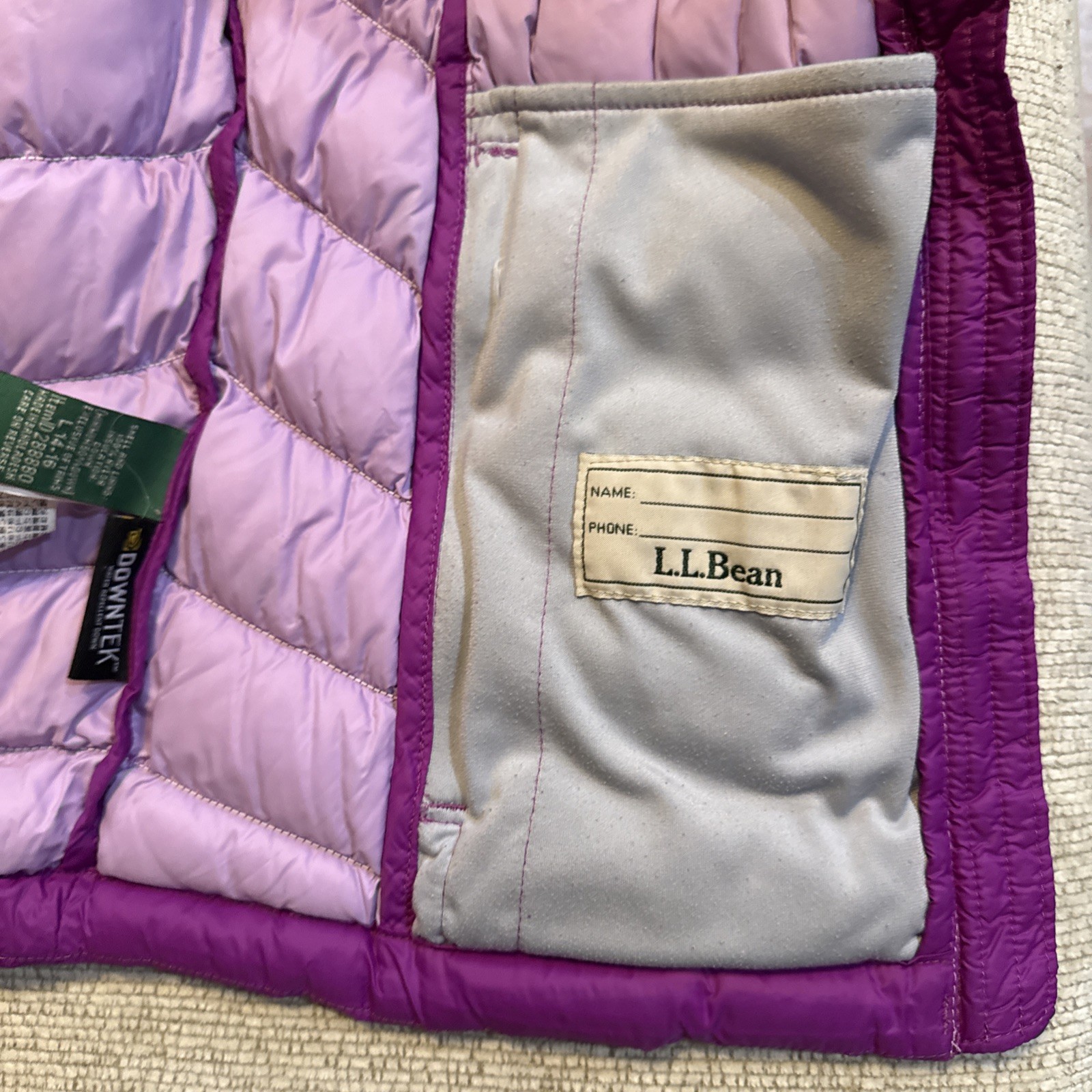 как выглядит Kids LL Bean Down Puff Vest Girls L 14-16 Downtek Nylon Purple -0195 фото
