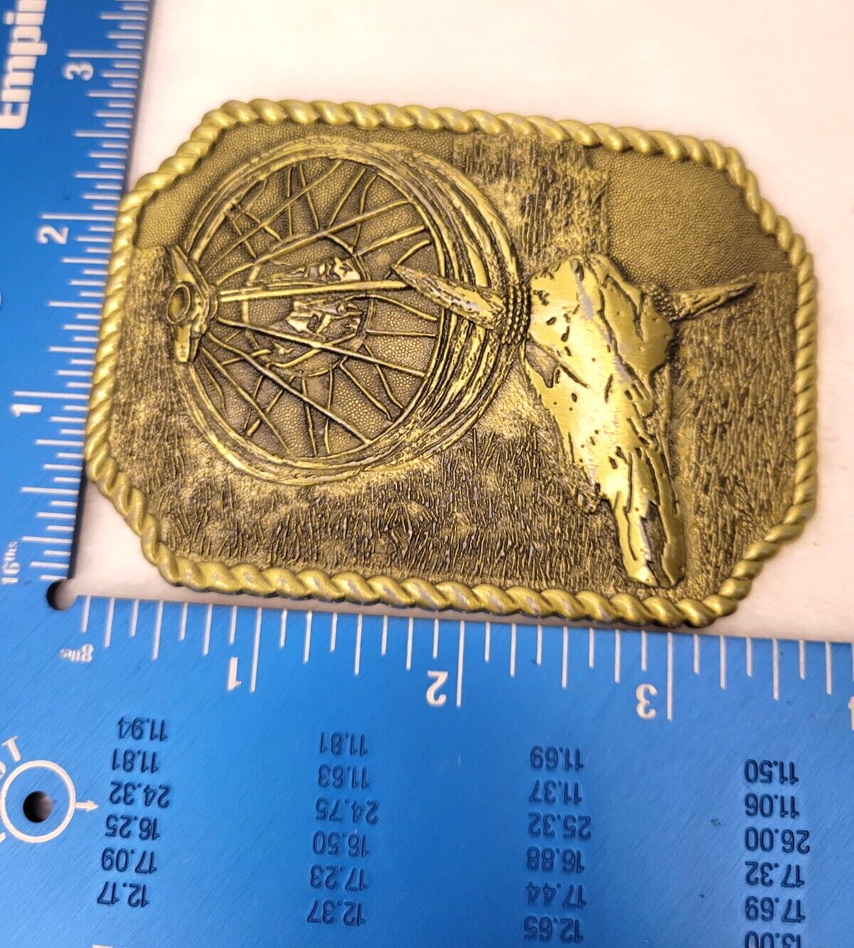 как выглядит Antique Brass Plated Belt Buckle Cattle Skull 84 Swagin, Bangin, Twangin фото