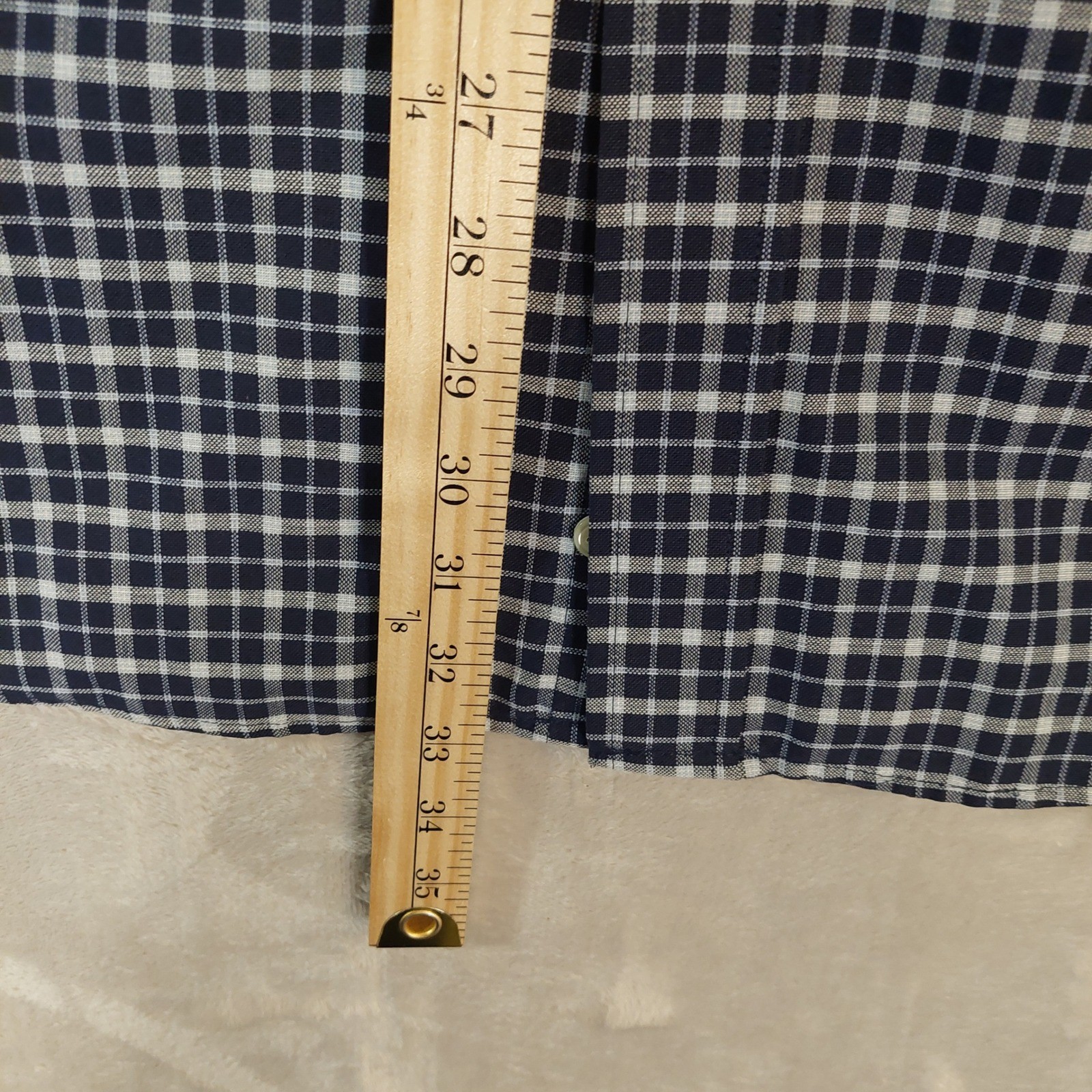 как выглядит Stafford Mens Button Down Shirt 18 Navy Blue Check Wrinkle Free Short Sleeve фото
